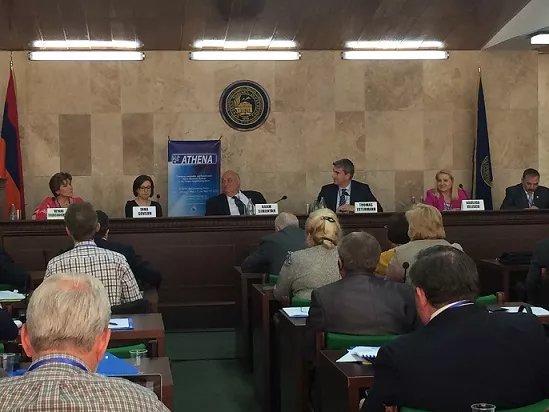Yerevan State University hosted a Benchmarking Forum in the framework of Fostering Sustainable and Autonomous Higher Education Systems in the Eastern Neighbouring Area (ATHENA) project on 12-13th May, 2015. Among its participants were staff members from the European University Association (EUA), the EU partner universities – University of Helsinki, University of Coimbra, Politechnic of Coimbra, University of Amsterdam, and national delegations from Ukraine, Armenia, Moldova. The Ukrainian delegation was headed by Inna Sovsun, First Deputy Minister of Education and Science. In her speech, the official outlined the most pressing issues of higher education in Ukraine related to the implementation of a new Law on Higher Education. The official focused on the setting up of National Agency for Quality Assurance in Higher Education, positive achievements in the field of University academic autonomy, comprehensive assistance and support of Ukrainian Universities by the Ministry of Education and Science.
