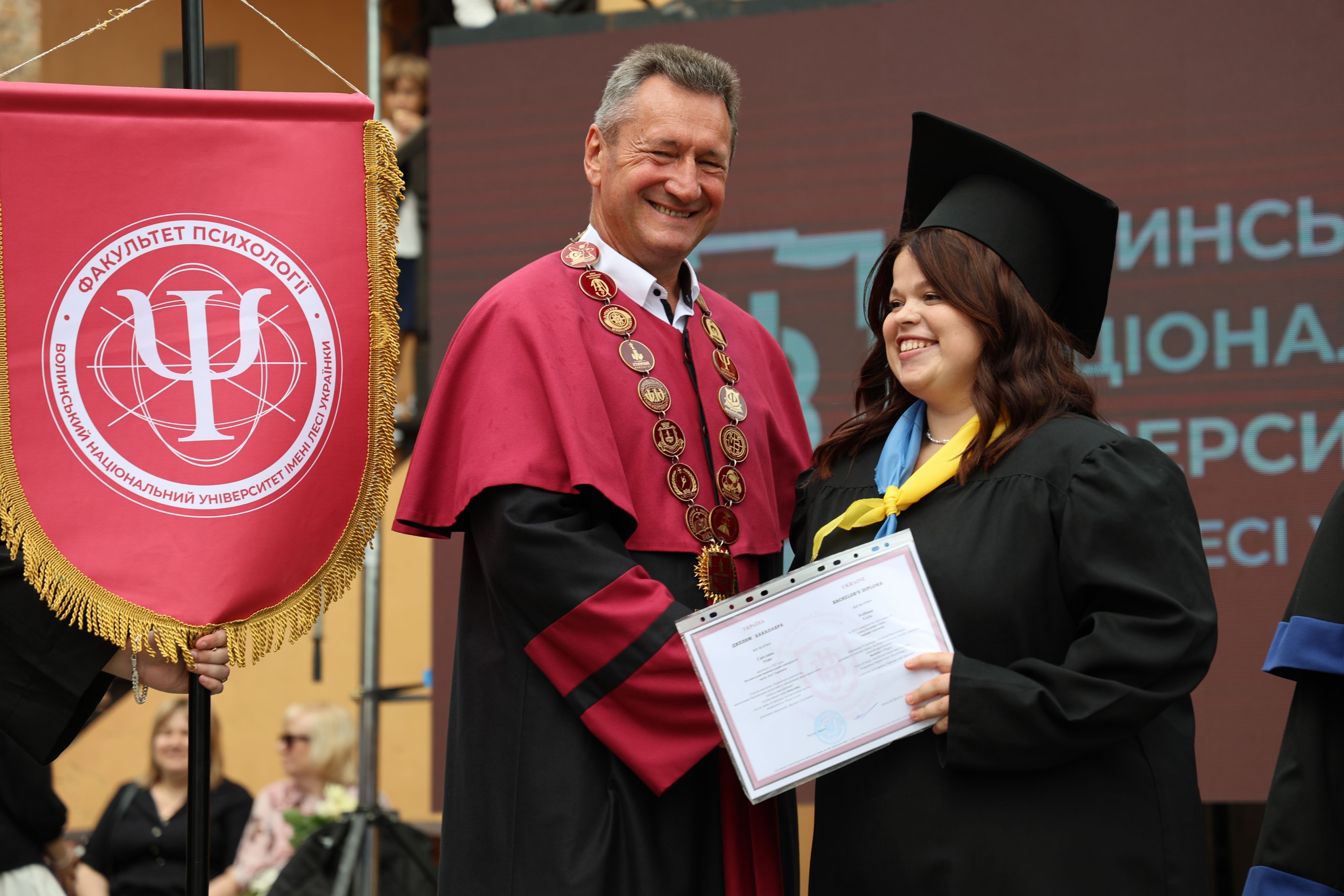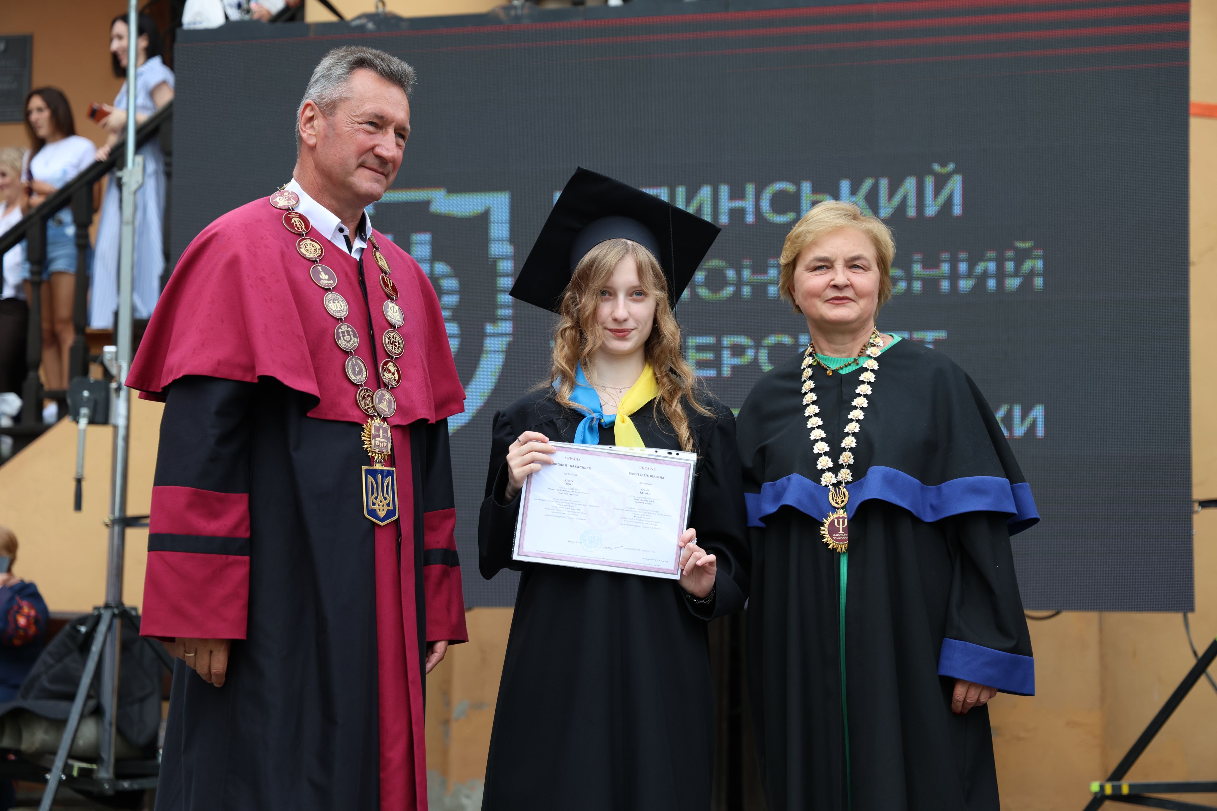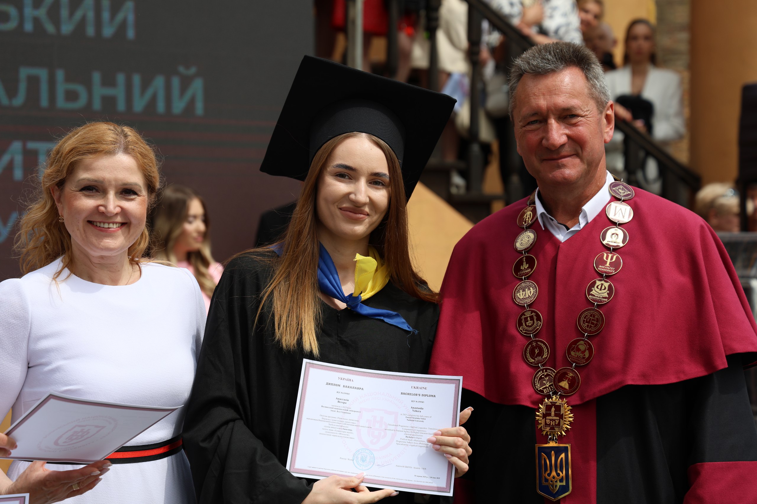 On July 12, the walls of Lutsk Castle were noisy, solemn, crowded, joyful and a little bit sad, because 1639 students of Lesya Ukrainka Volyn National University completed one of the most important stages of their lives, receiving documents on obtaining a bachelor's degree. In addition, the graduates of Medical Faculty received their desired master's degrees.