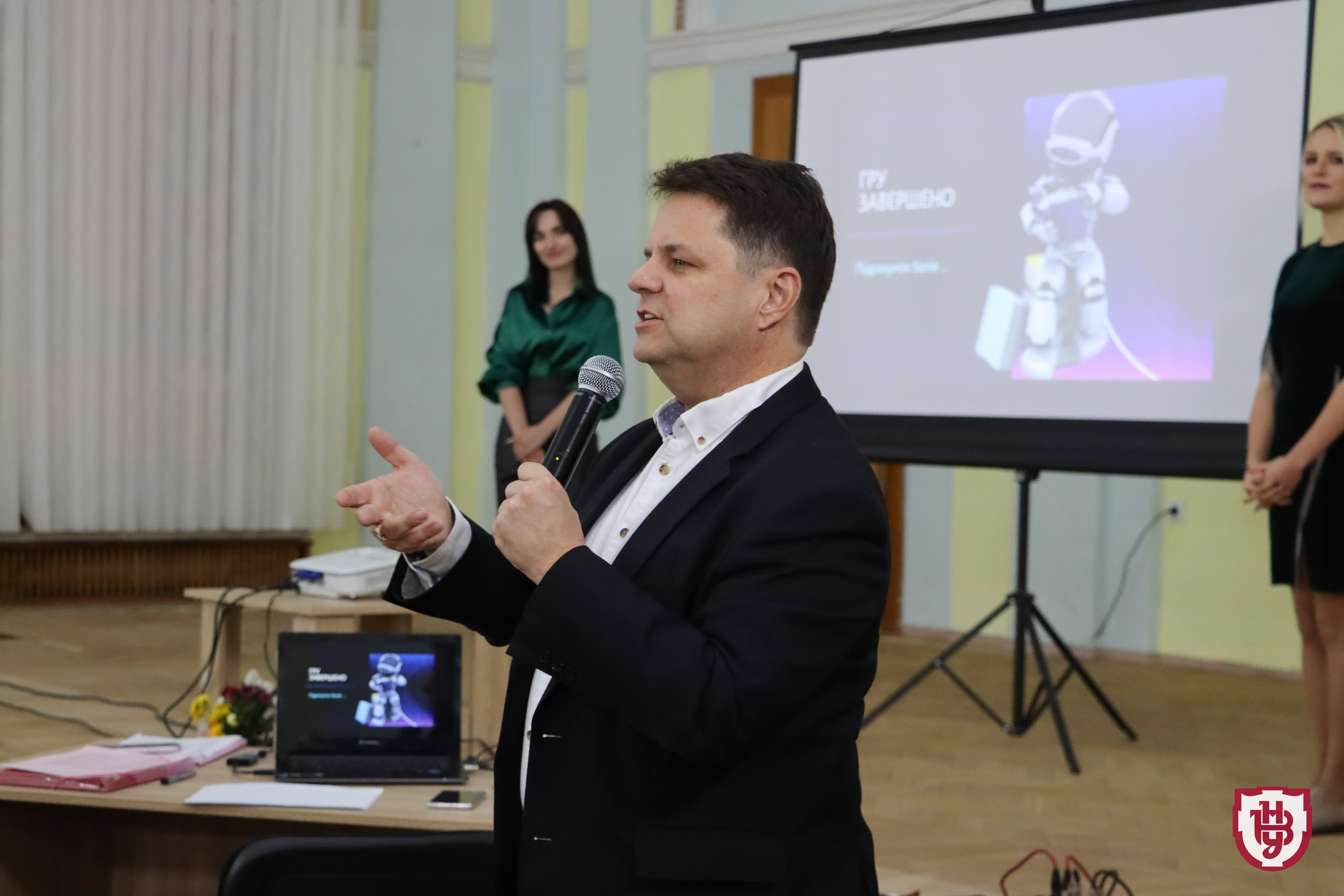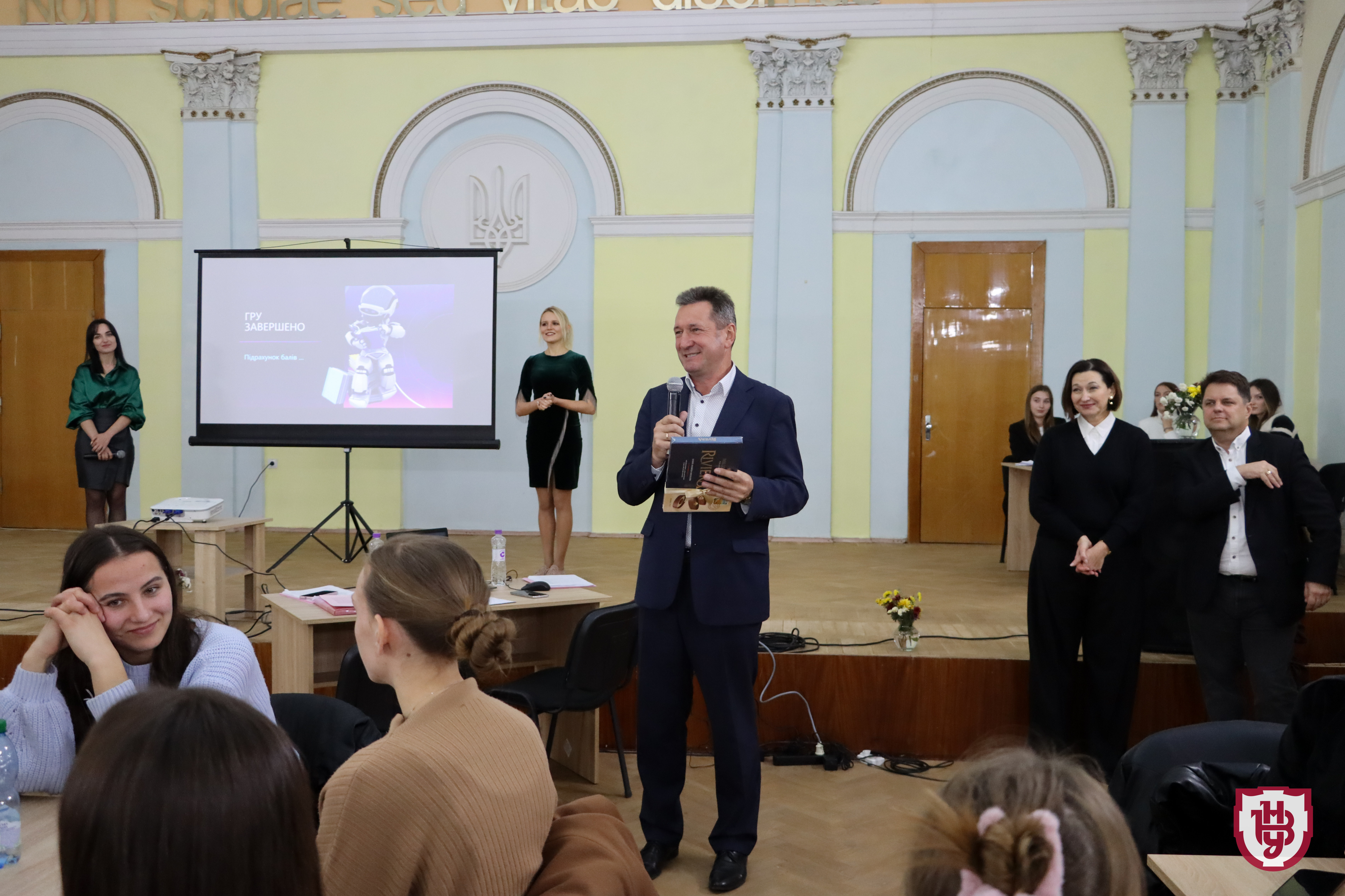 Mykhailo Ivan Vynnytskyi also got acquainted with the work of the simultaneous translation laboratory at Faculty of Foreign Philology, talked with Dean Larysa Makaruk, lecturers and students, and also visited the "Student Scientific Game", traditionally organised by the Scientific Society of Postgraduate Students and Students.