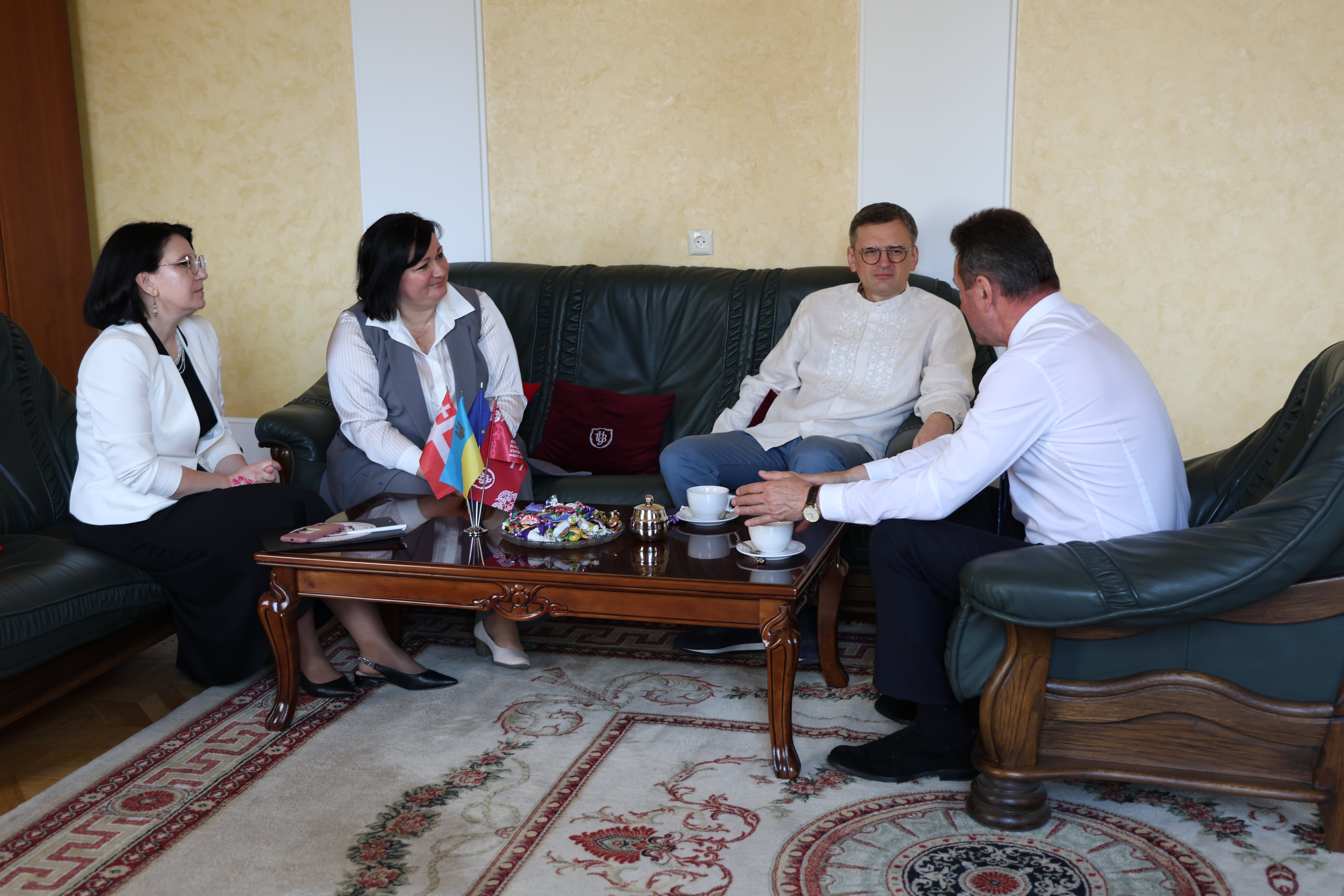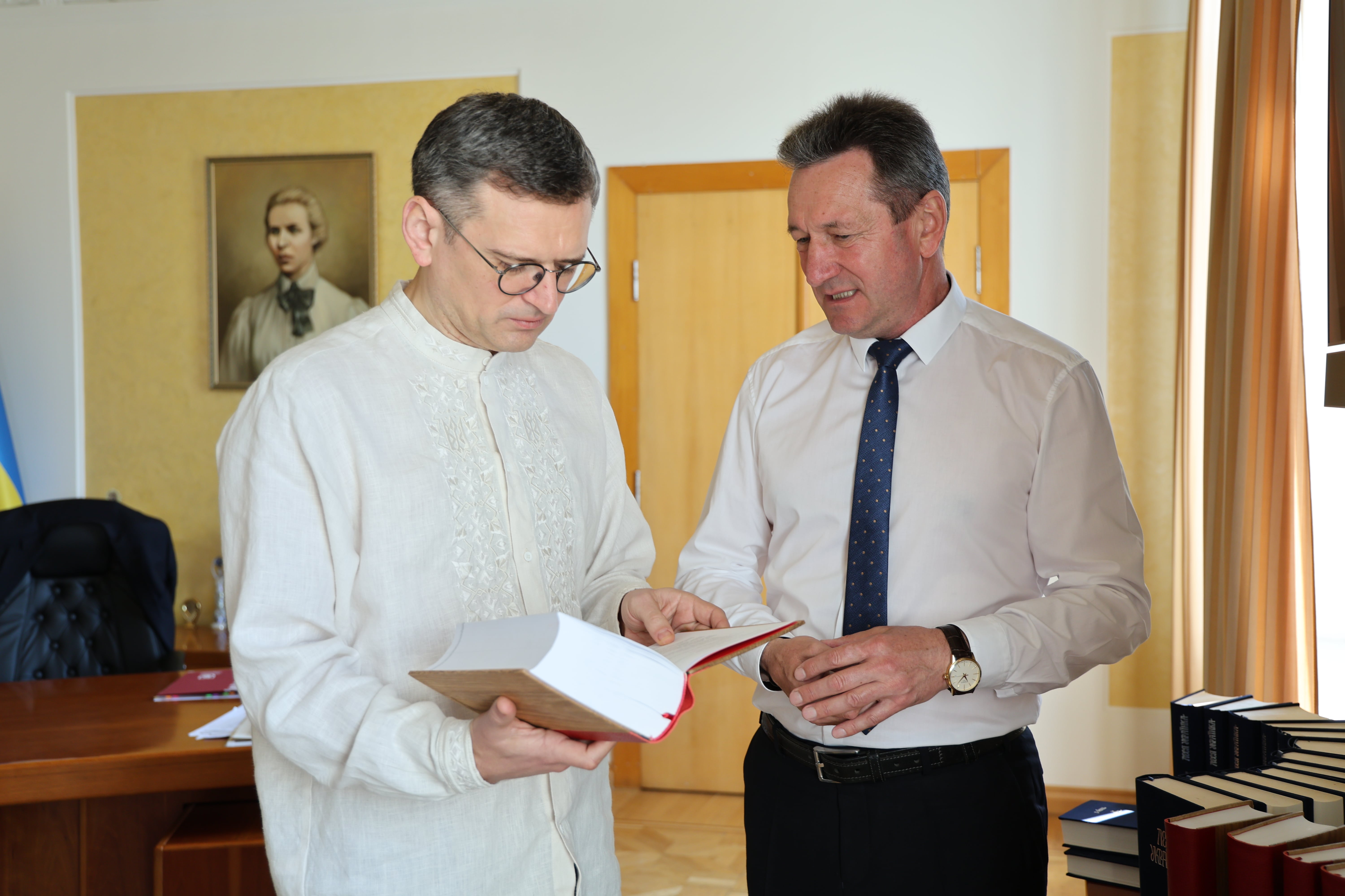 Dmytro Kuleba was received by acting rector Anatolii Tsos, Vice-Rector Natalia Blahovirna, Dean of Faculty of International Relations Antonina Shuliak. The current state of Ukrainian higher education was discussed as well as the key problems and challenges embraced by higher education institutions today, in particular in the local context.
