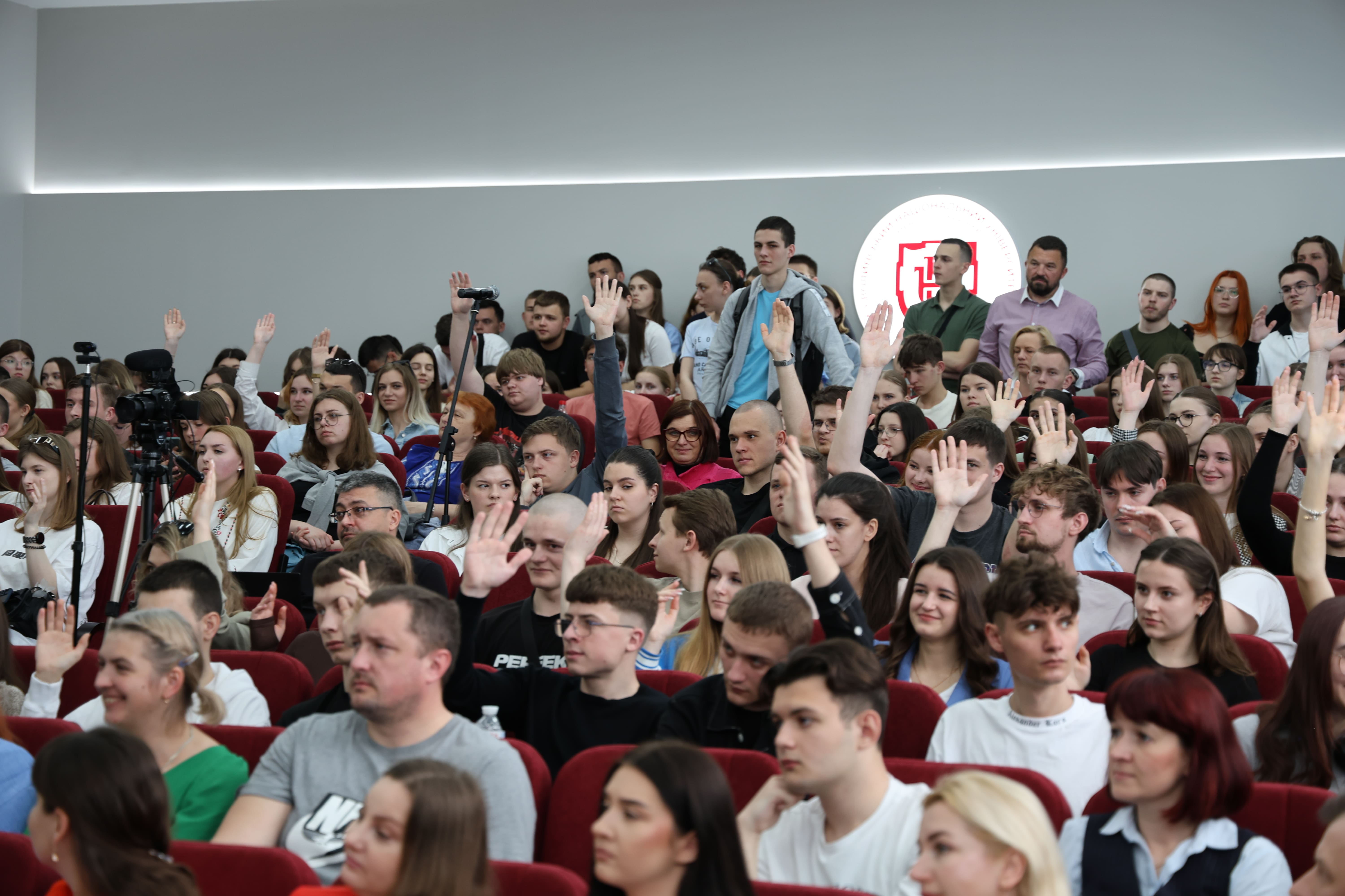 “We continue to develop our university as an open educational institution cooperating with business, government, as well as creative, intelligent, and talented individuals. Today we have such a meeting, and I am happy that Dmytro Ivanovych found time to visit our university, to see our students,” said acting rector Anatolii Tsos in his welcome speech.