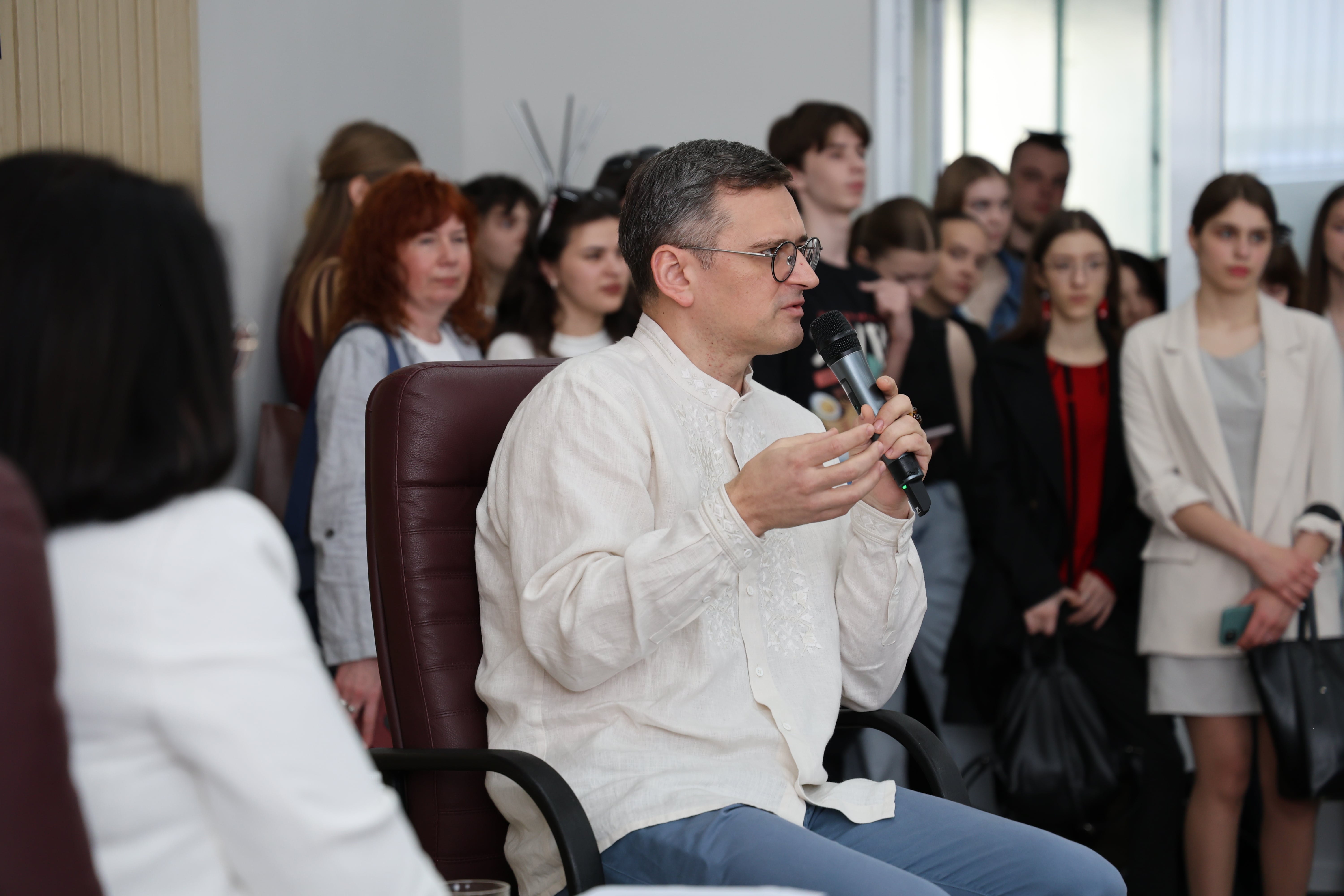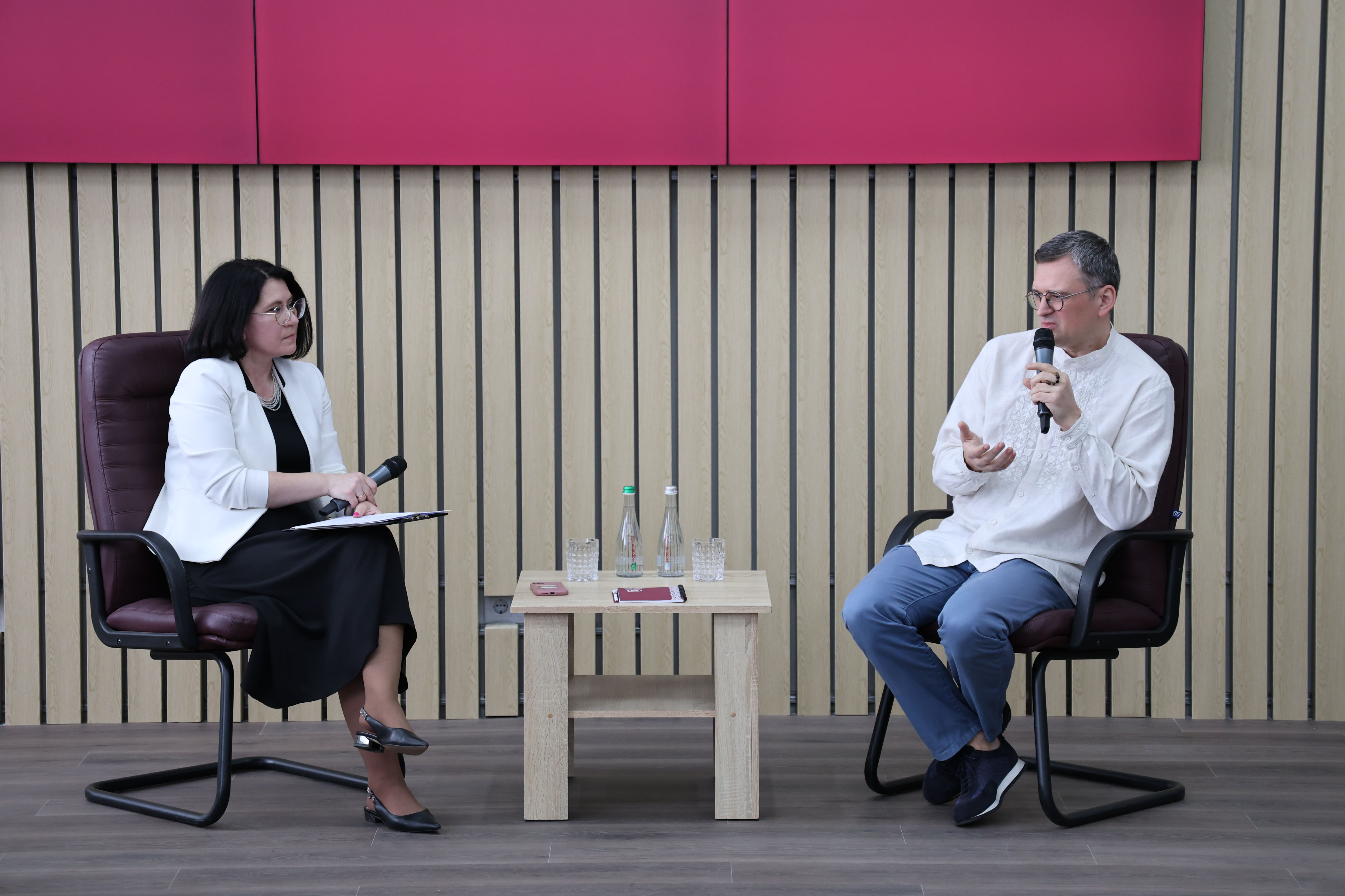 An open interview was held after with Dmytro Kuleba, moderated by Nataliia Blahovirna, Vice-Rector for Academic Affairs and Communications.