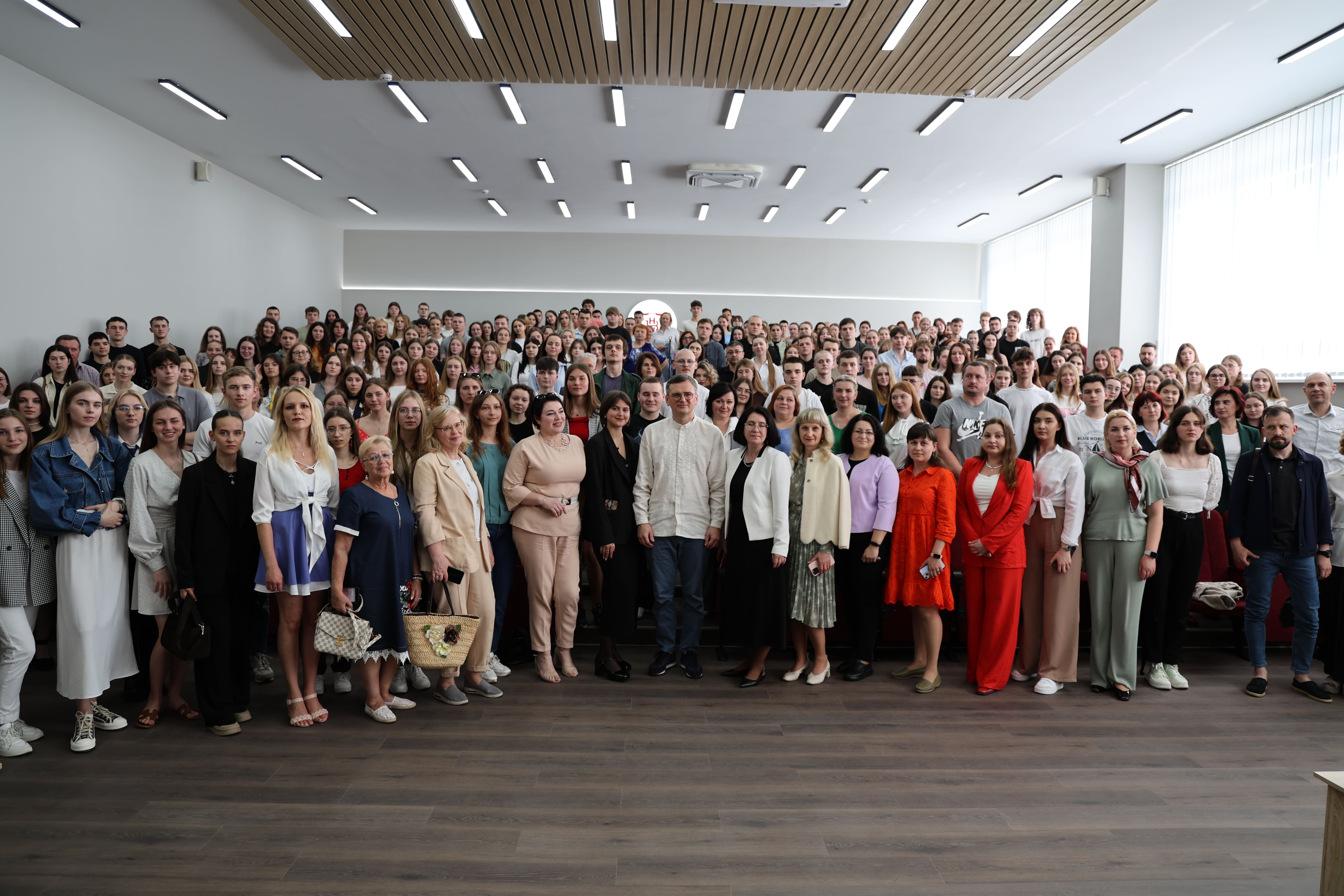 “My appearance here is precisely thanks to Mr. Anatolii. Under my Instagram post about visiting Lutsk, he left a comment with an invitation to the university. This is the first time that a rector has left a comment under my Instagram post, so this is a very good example of what a modern rector of a modern university should be like. So far, from what I have seen in Lutsk and at the educational institution, I can say: you are lucky with both the educators and the administration caring about you and trying to give you the best education,” said Dmytro Kuleba, addressing the students.