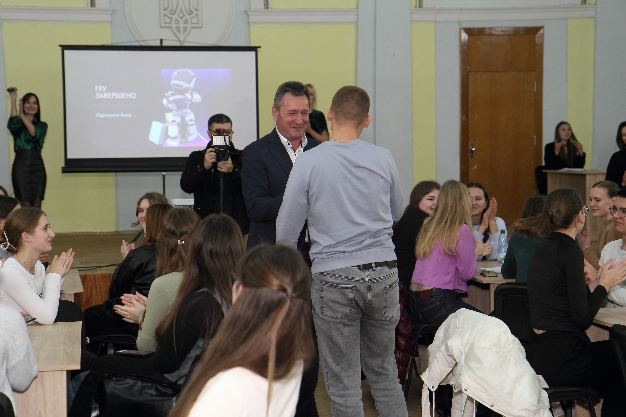 Приємним сюрпризом для учасників гри було запитання від ректора Анатолія Цьося та відповідний приз.