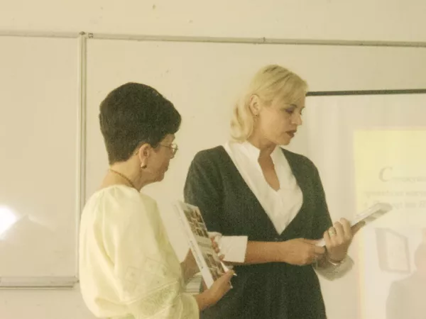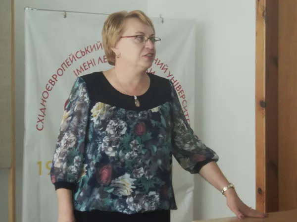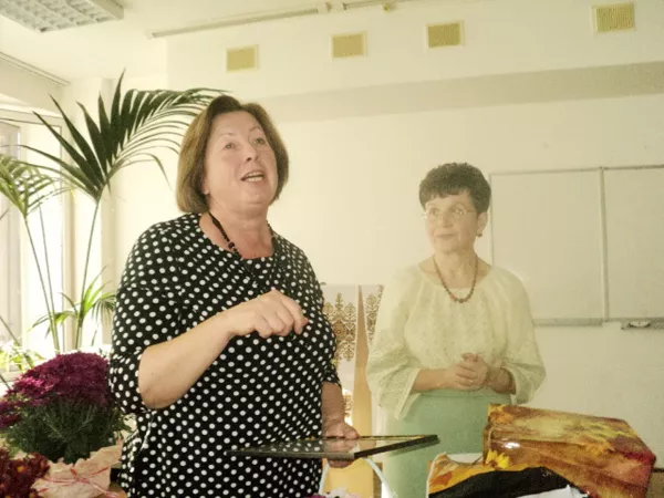 Завідувач інформаційно-бібліографічного відділу бібліотеки Східноєвропейського національного університету Тетяна Гула та бібліотекар цієї книгозбірні Інна Сидорук представили присутнім видання, підготовані кафедрою історії та культури української мови.
