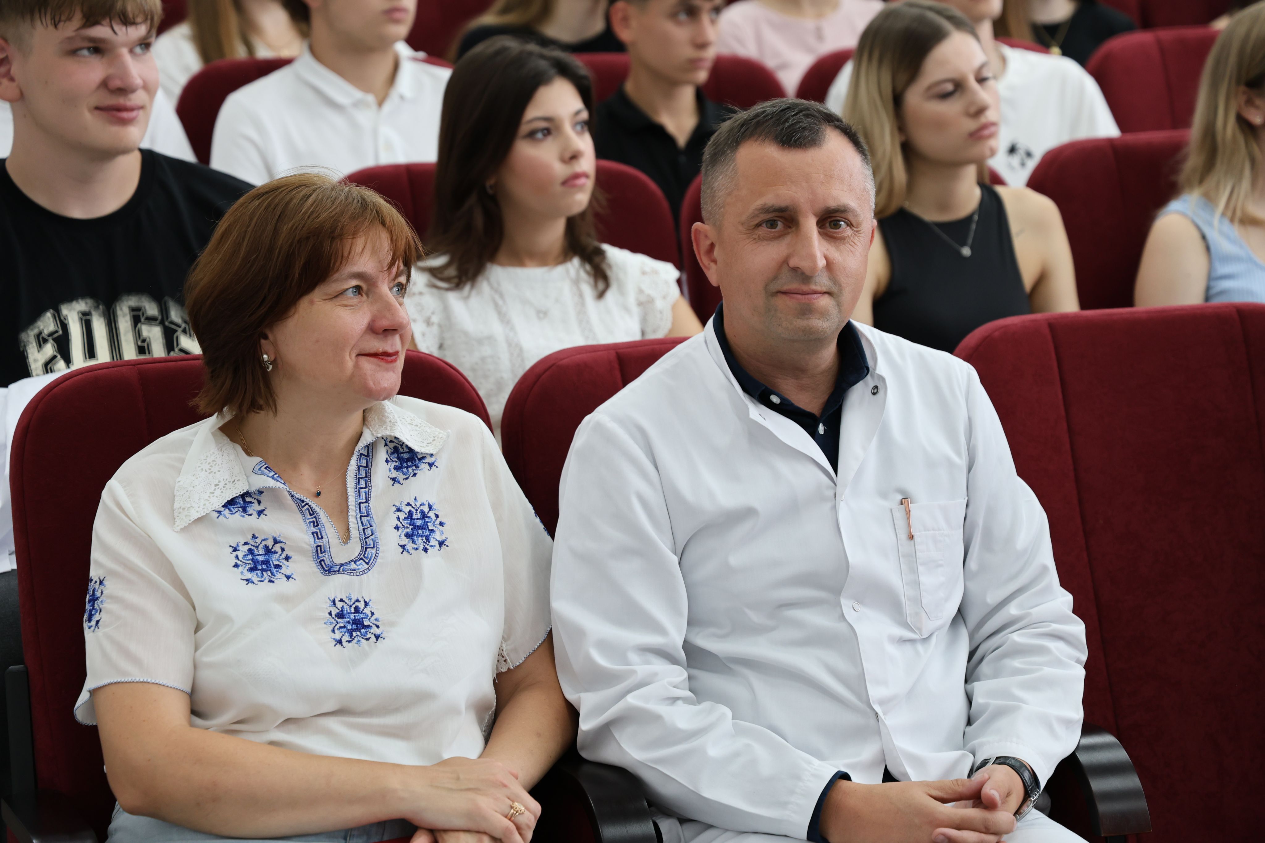 Rector Anatolii Tsos thanked the future doctors for choosing the University, assuring them that it was the right step. “We have wonderful laboratories, wonderful teachers, and modern conditions for you to acquire this responsible and honorable profession. I thank you for this choice, which is extremely necessary for our Ukraine,” said Anatolii Vasylovych.