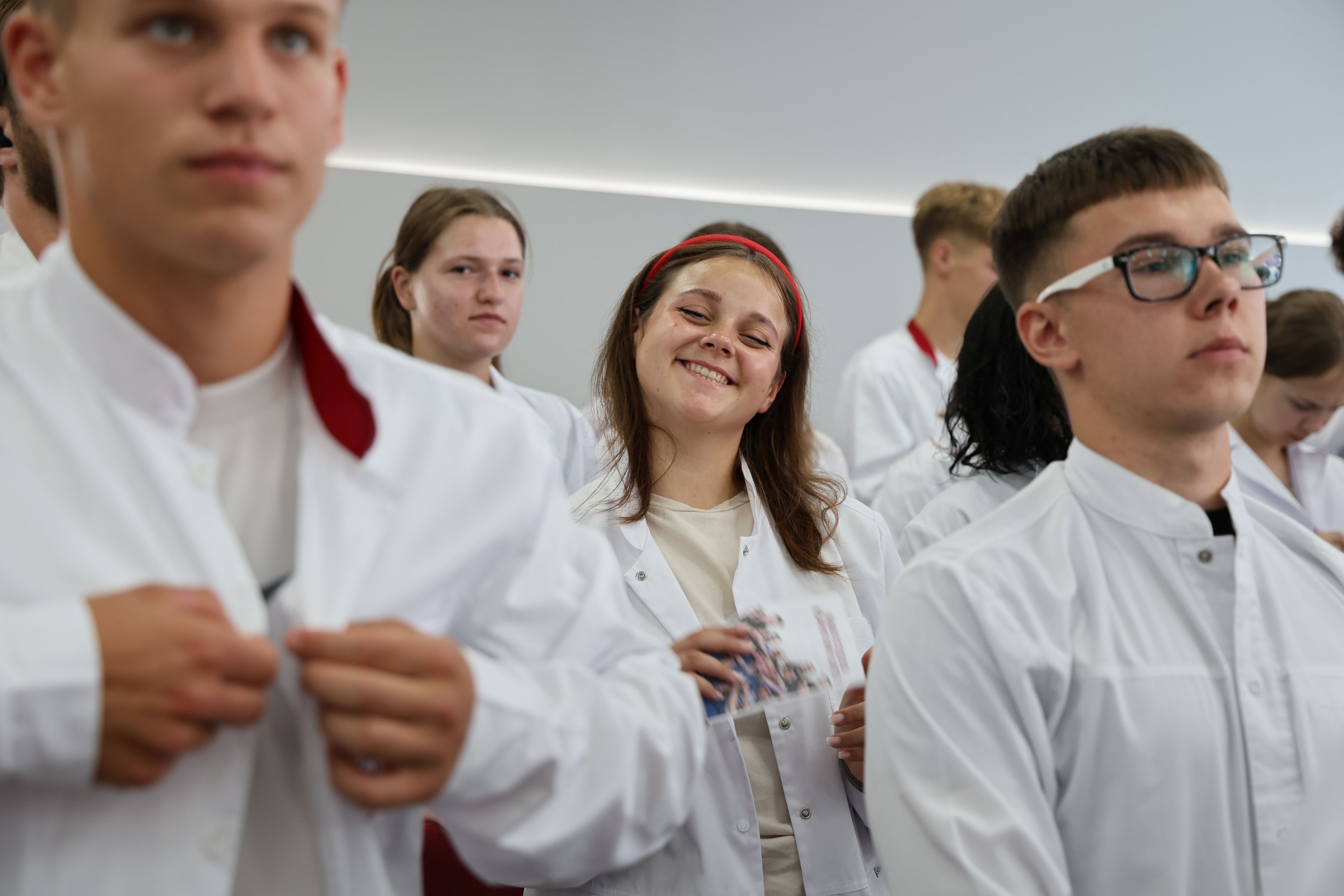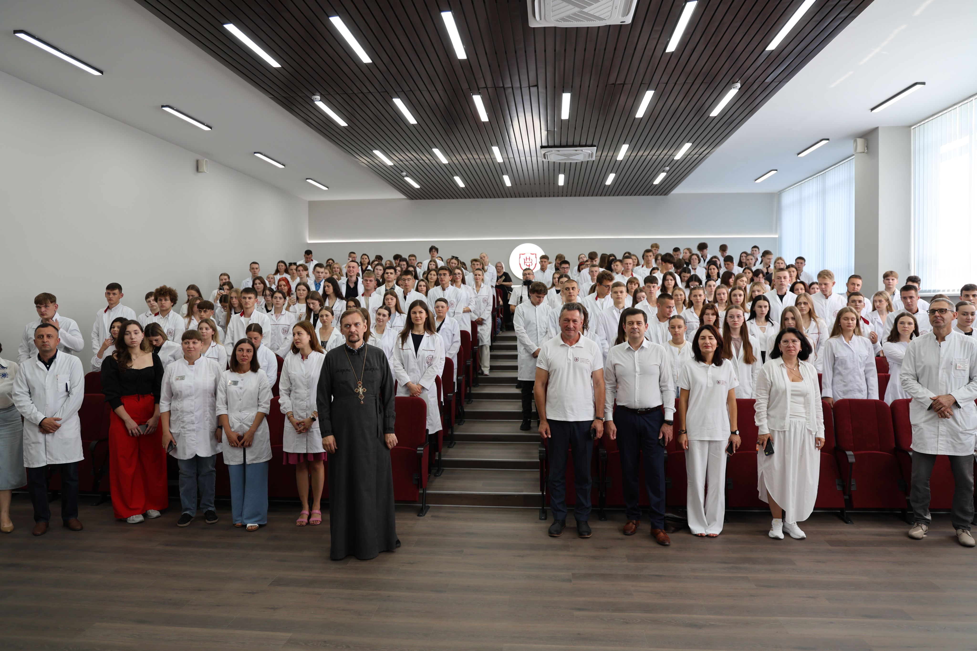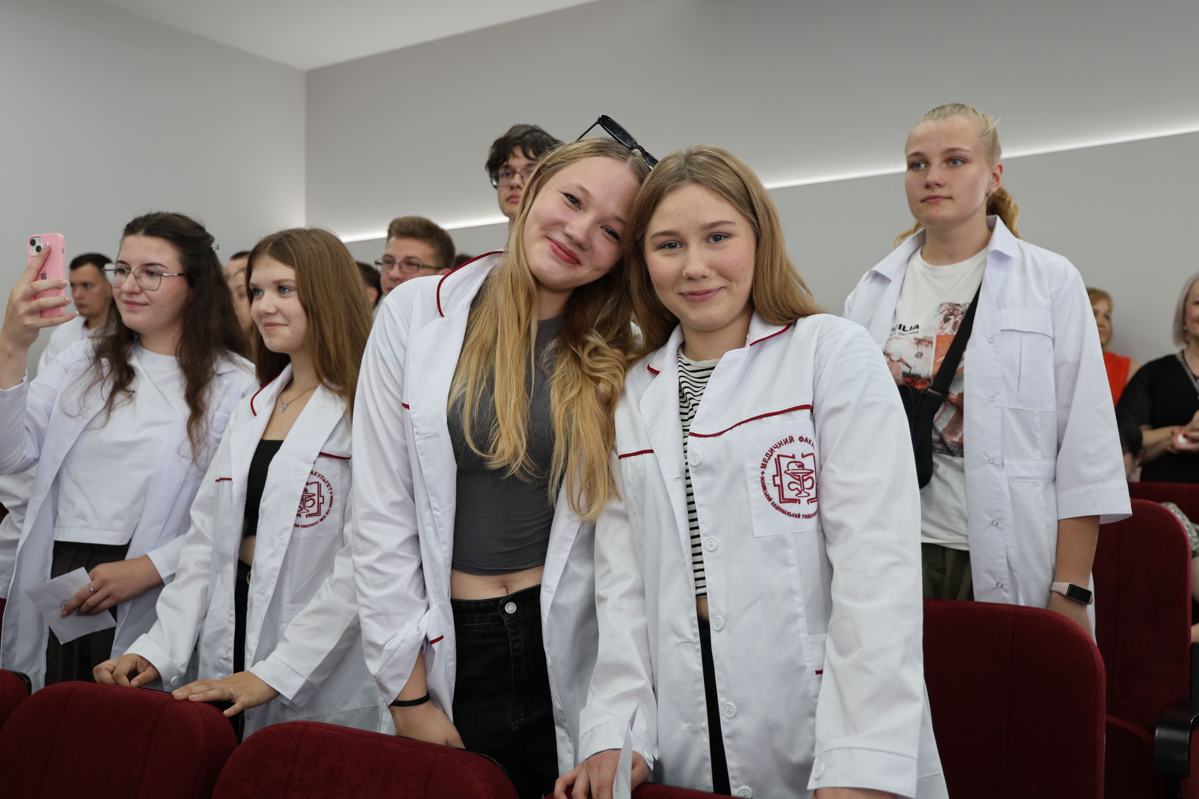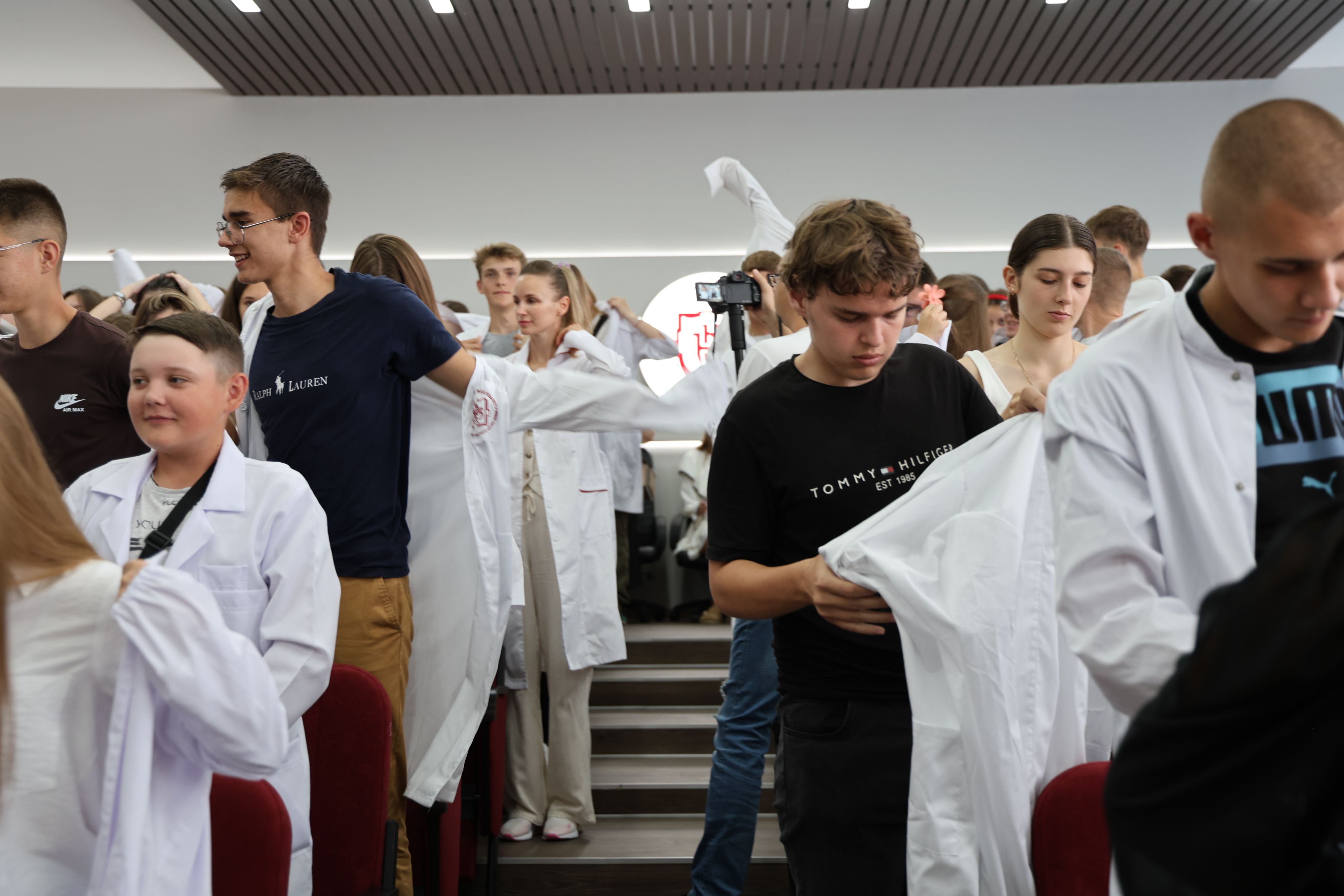 After the congratulations, the future doctors made a solemn promise to worthily wear the title of a student of Medical Faculty, study conscientiously, improve their knowledge and always be ready to come to the aid of those in need, and to the applause of those present, white coats were put on.