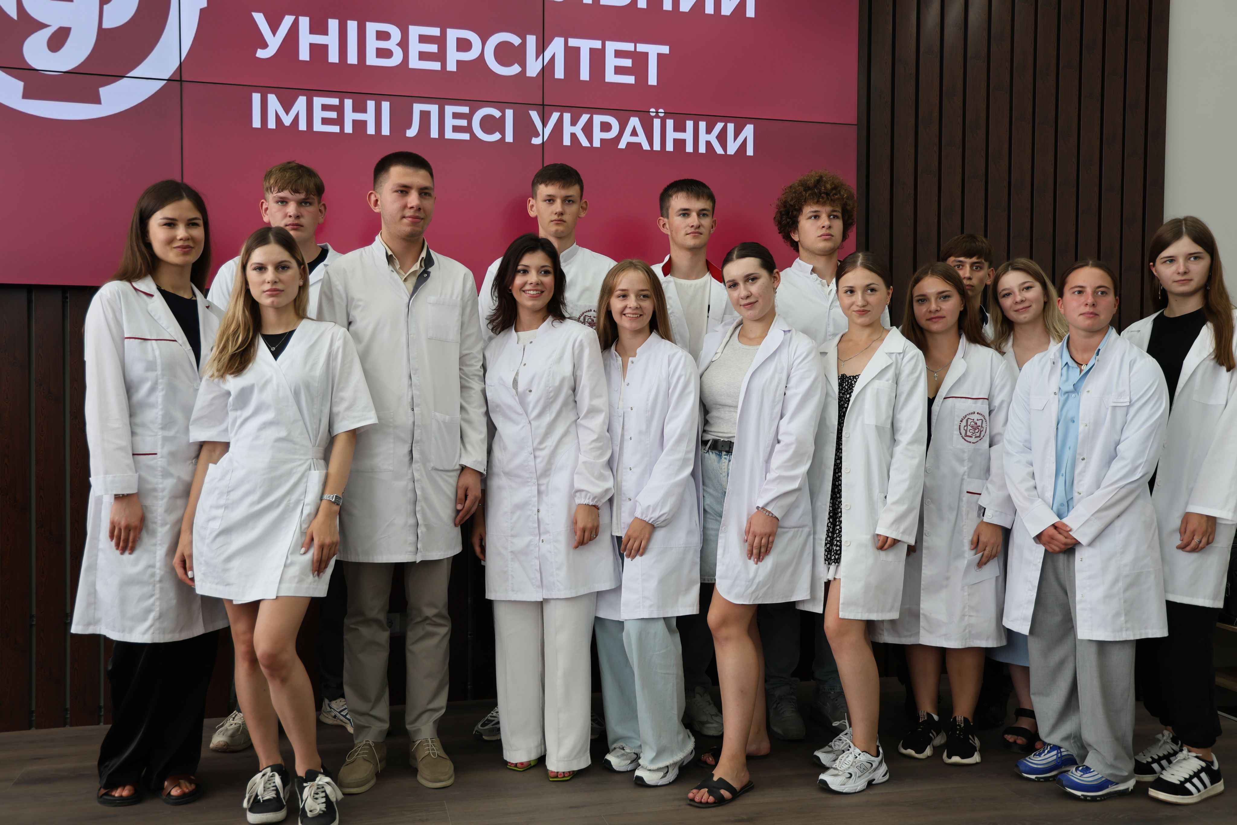 On September 4, 2025, a solemn ceremony of putting on white coats by first-year students of Medical Faculty took place at Lesya Ukrainka Volyn National University. This event is a form of students initiation and a symbolic acceptance of the chosen path of serving medicine and people.