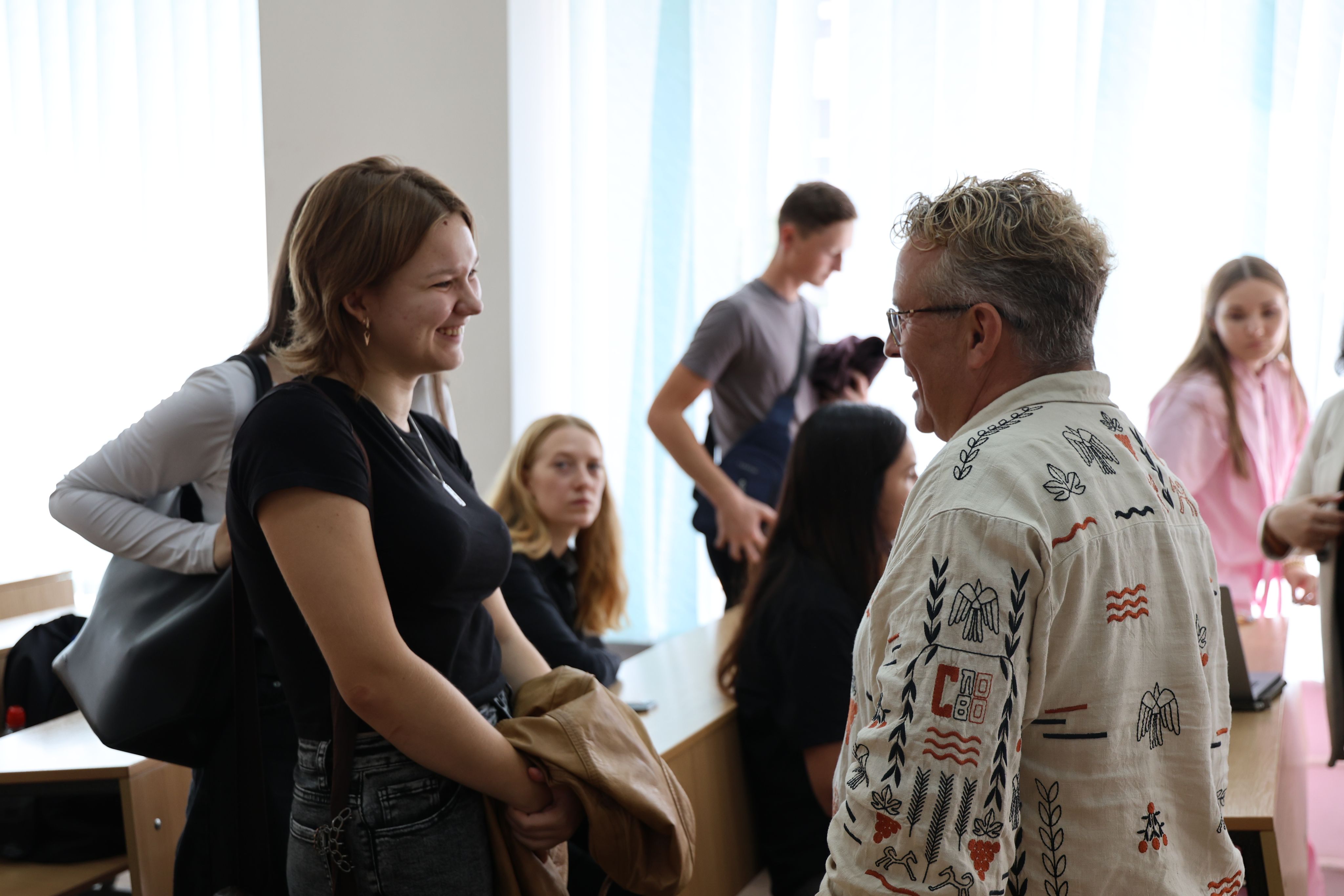 Among the listeners were Vice-Rector Nataliia Blahovirna and Head of Department of Social Communications Olena Koshelyuk, member of the Supervisory Board of RE:Cover – Peer-to-Peer Journalism Project Olga Virsta, Morten Hansen’s colleague, the Danish investigative journalist Siri Franceska, and the students.