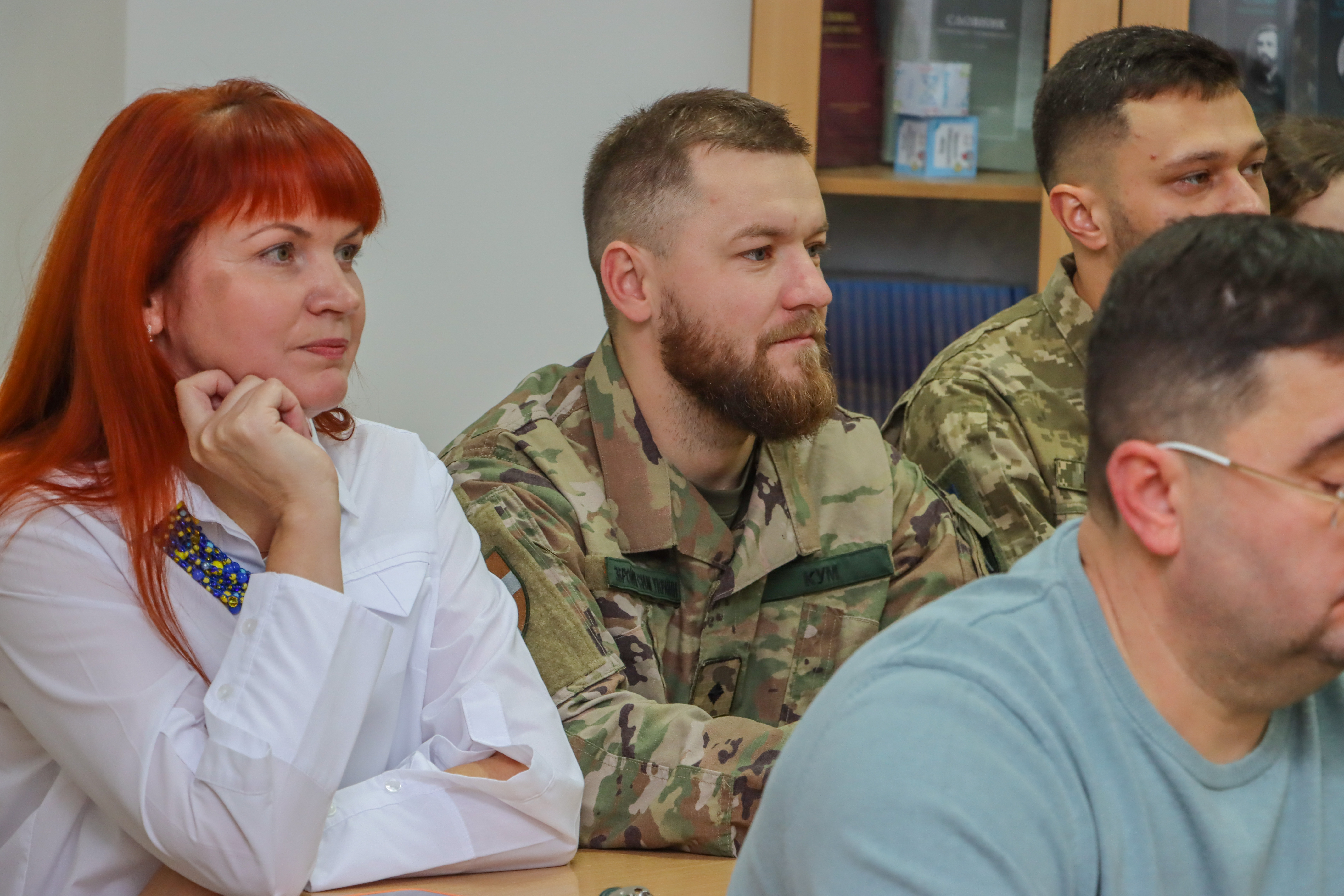 The event was moderated by Candidate of Philological Sciences Iryna Levchuk. The event was attended by Rector Anatolii Tsos, Dean of Faculty of Philology and Journalism Liliia Lavrynovych, General Director of Volyn Regional Hospital Oleksandr Dudar, Medical Director of the Regional Hospital Mykola Haley, lecturers and students of the higher education institution. It is nice that the servicepersons of the 100th Separate Mechanised Brigade, graduates of Faculty of Culture and Arts Vladislav Semeniuk and Andrii Hranat, also visited the event.