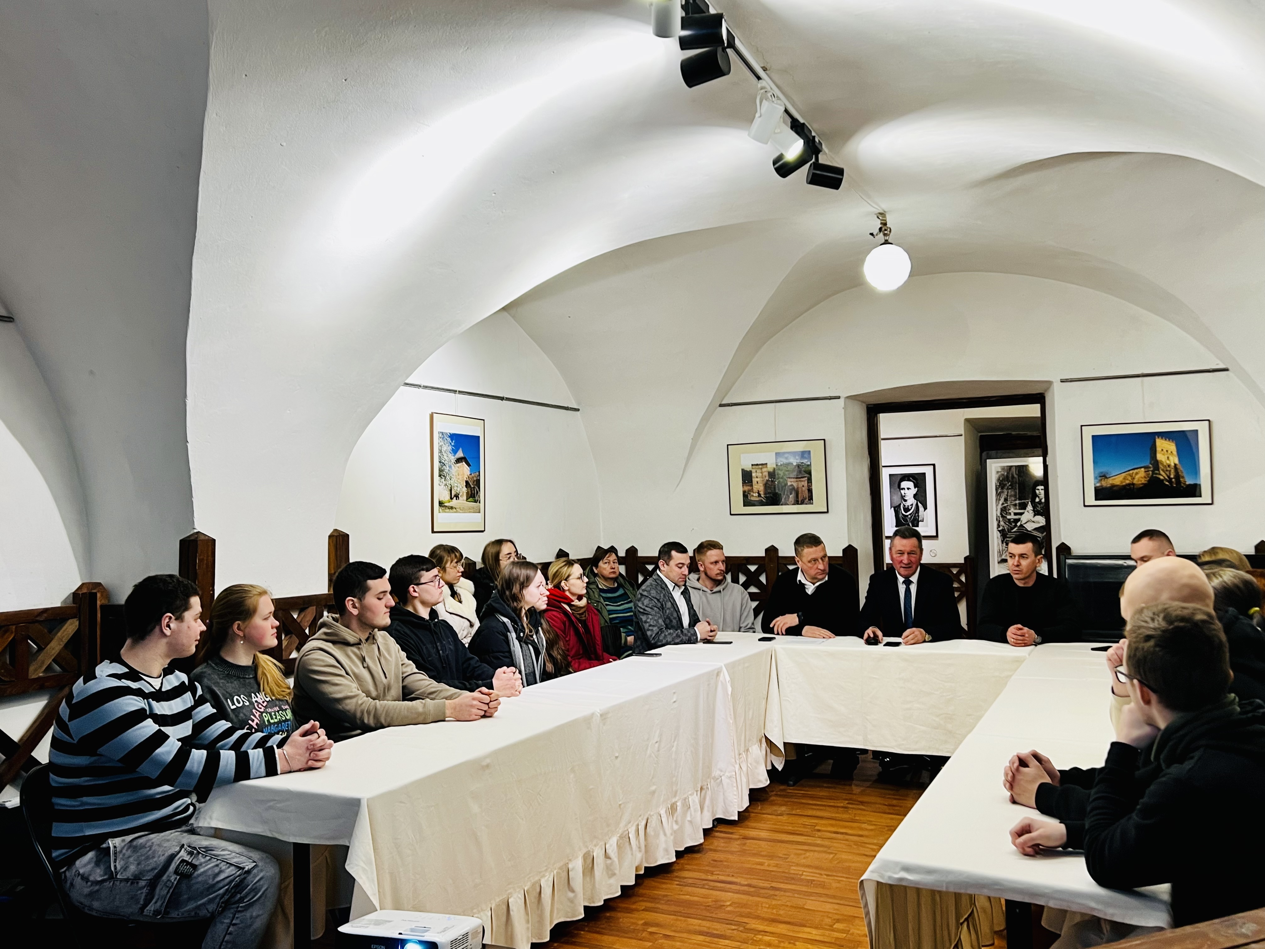 February 12, 2025, a meeting was held at the "Staryi Lutsk" historical and cultural reserve during which the participants discussed the implementation of the educational process with dual education elements. The event was attended by students, as well as acting rector Anatolii Tsos, Dean of Faculty of History, Political Science and National Security Yaroslav Yarosh, Deputy Dean Ivan Rudianyn, Head of Department of Musical Art Ivan Kosynets, representatives of the reserve the reserve and the "Caritas-Spes Lutsk" public organisation.