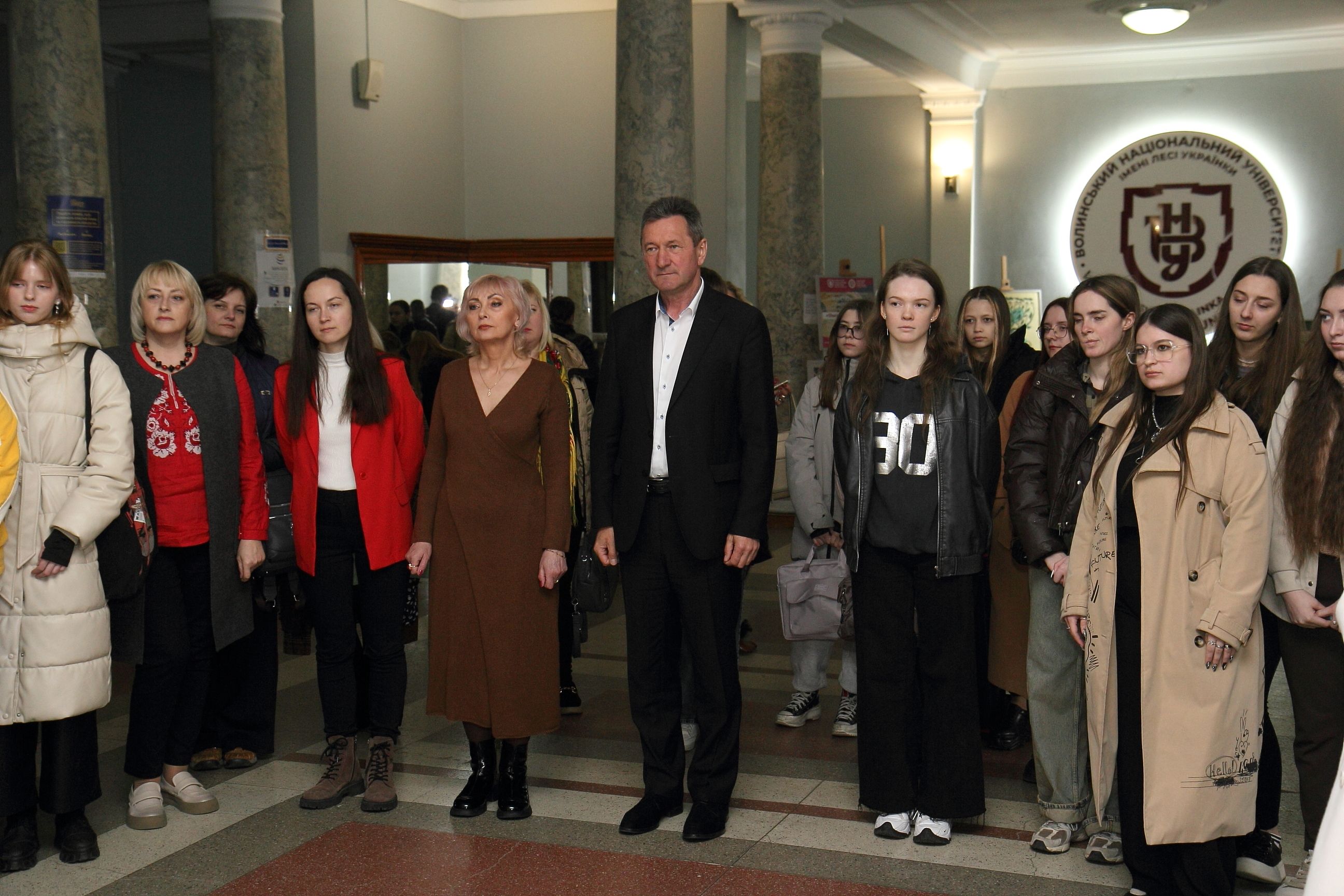 The event was attended by acting rector Anatolii Tsos, Vice-Rectors, Dean of Faculty of Culture and Arts Vitalii Okhmaniuk, Head of Department of Fine Arts Tetiana Prokopovych, Associate Professor Oleksandr Berlach who supervised the process of creating works, lecturers and students.