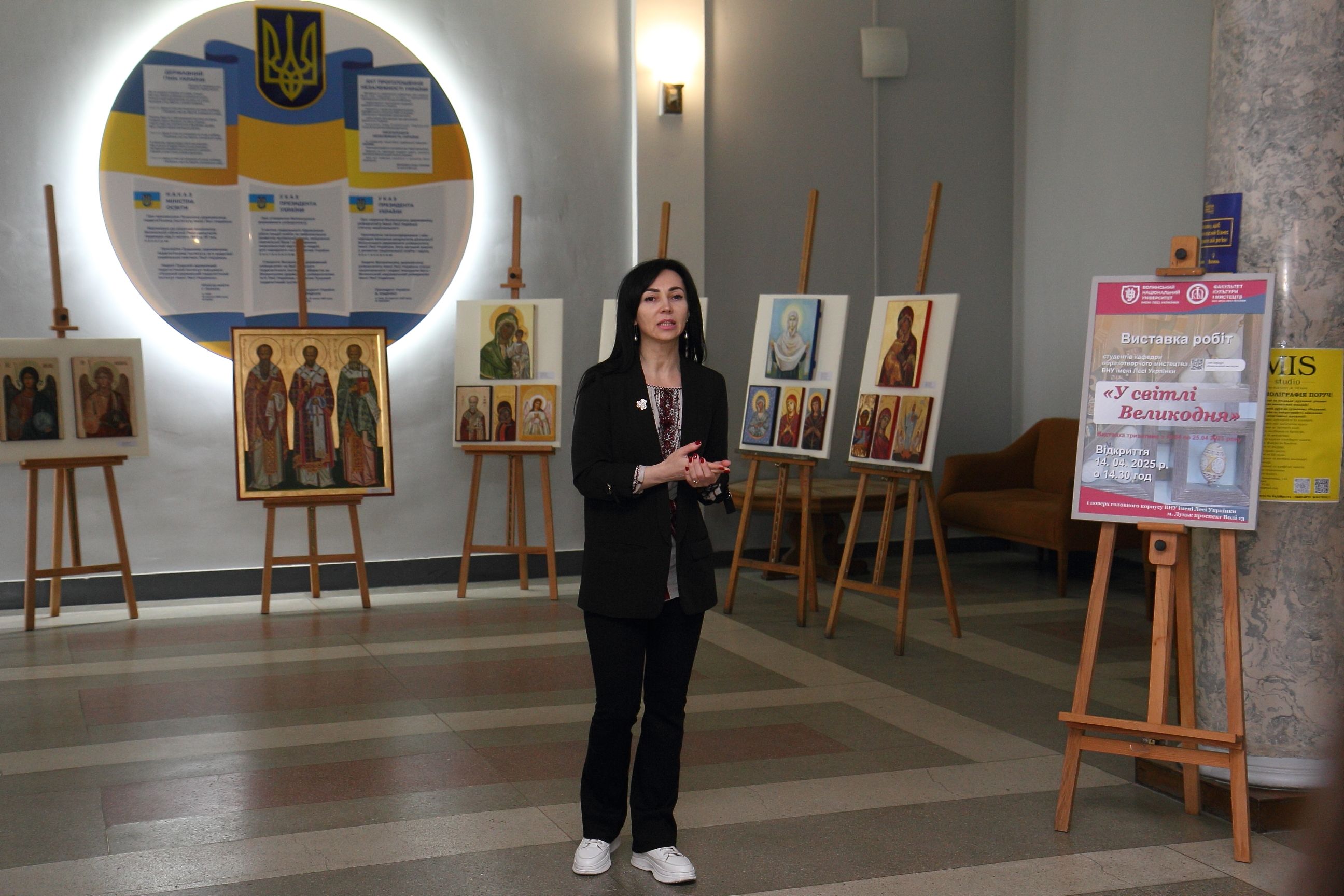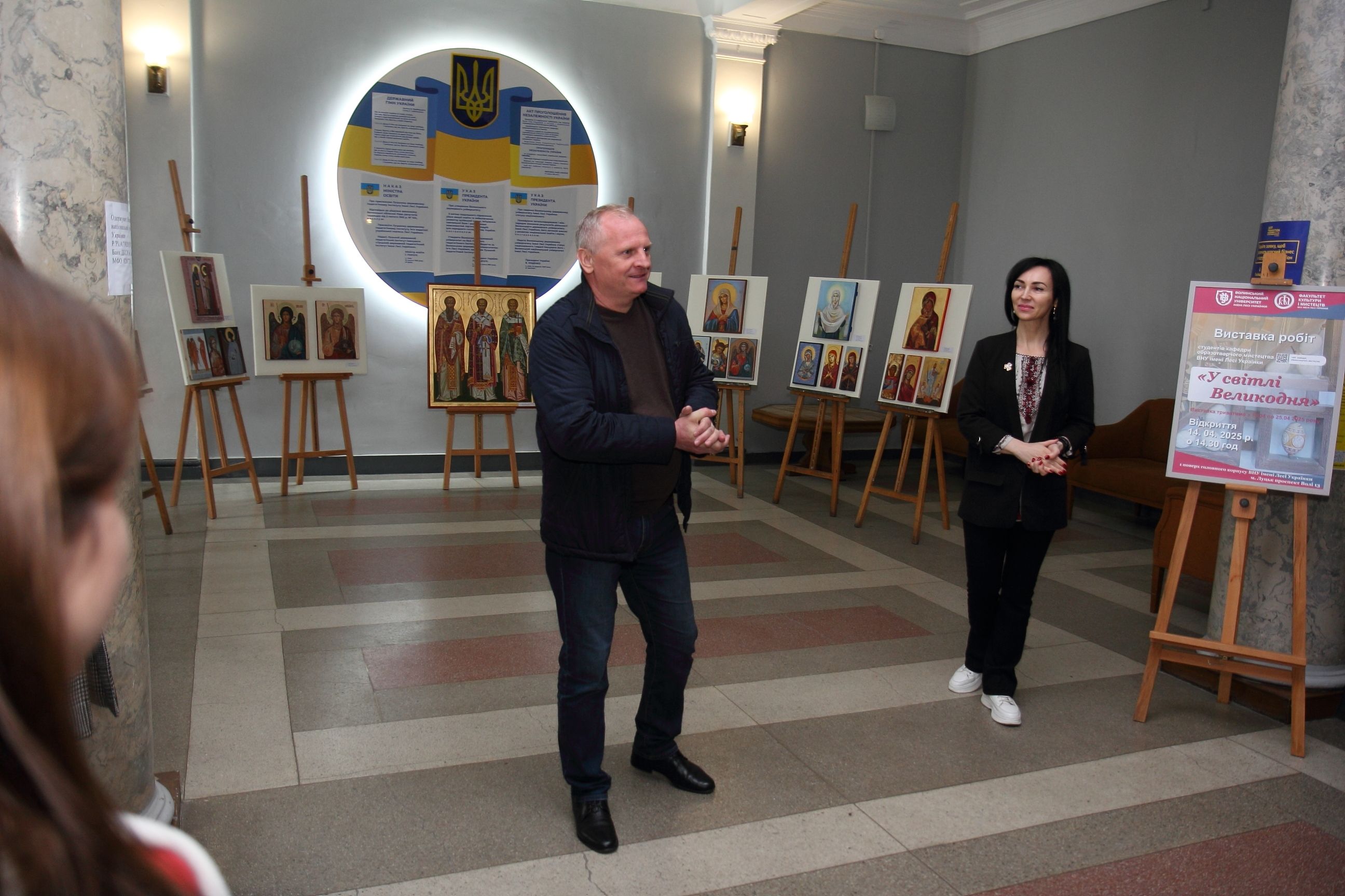 The exhibition presented for the first time the icons created by the students under the guidance of Associate Professor of the Department of Fine Arts Oleksandr Berlach. The creative work exhibited at the event is the result of two years of students' work.