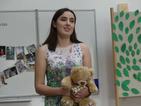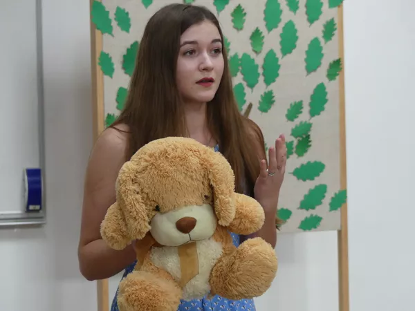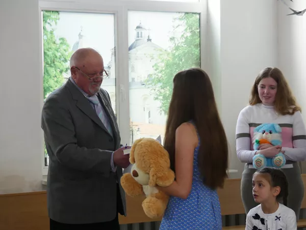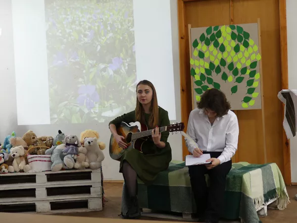 Читці виходили один за одним, декламували вірші, тримаючи в руках м’які іграшки, які згодом складали на стіл.