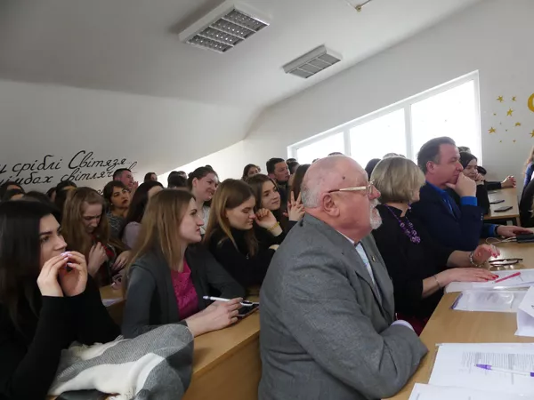 Крім того, до слова запросили Заслуженого вчителя України Олесю Ковальчук, яка розповіла про своє перше знайомство з поезією Ліни Костенко.