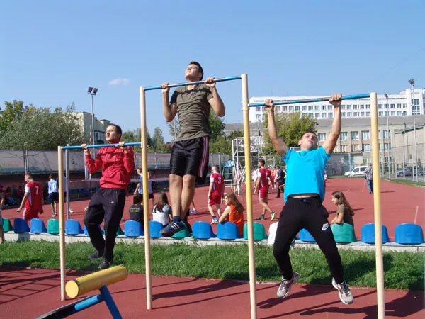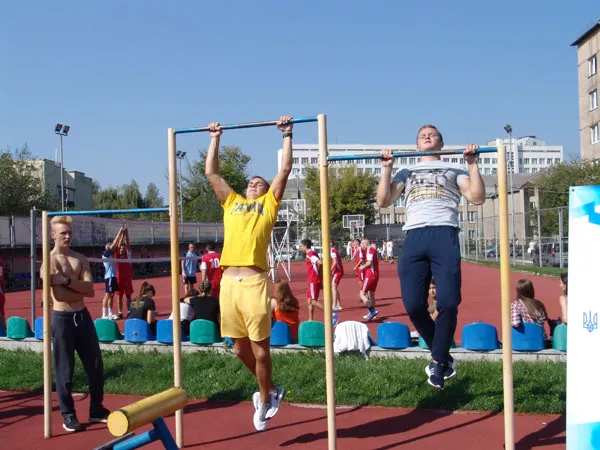 Після офіційної частини спортивне свято продовжилося флешмобом із підтягування на перекладині й виступами кращих студентських команд нашого університету з футболу, волейболу та баскетболу.