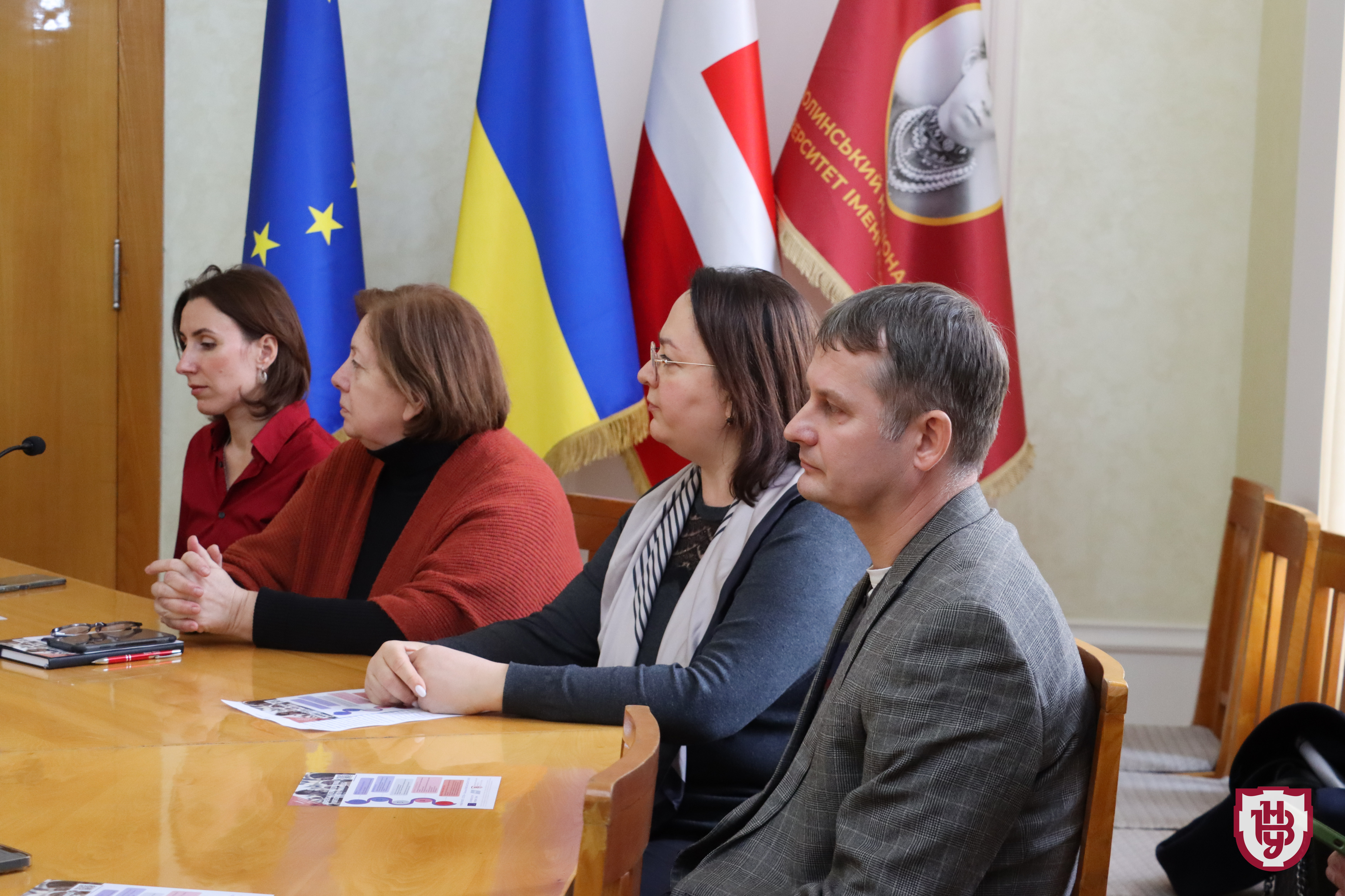 The event was attended by: Vice-Rector for Academic Affairs and Communication Nataliia Blahovirna, Head of Lutsk District Council of Volyn Region Tatyana Pavlova-Bahriychuk, Director of Volyn Regional Centre for Advanced Training Tatiana Lytvynenko, Head of Department of Information Activities, Ensuring Interaction with Local Government Bodies and Digital Development of Lutsk District State (Military) Administration Olha Vatashchuk, Consolidated Information Analyst of the University Marta Sydoruk, Head of Department of International Relations and Regional Studies Nataliia Kotsan, Deputy of the 8th Convocation of Lutsk District Council Oleksandr Novak.