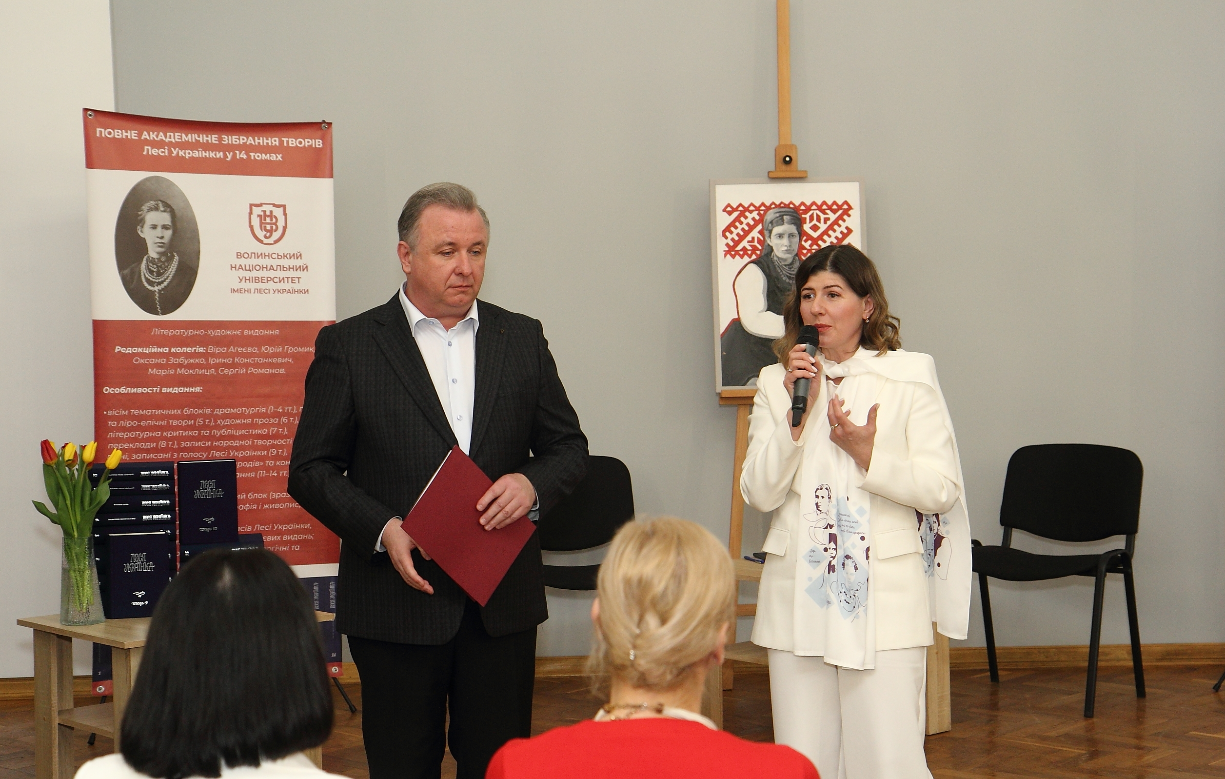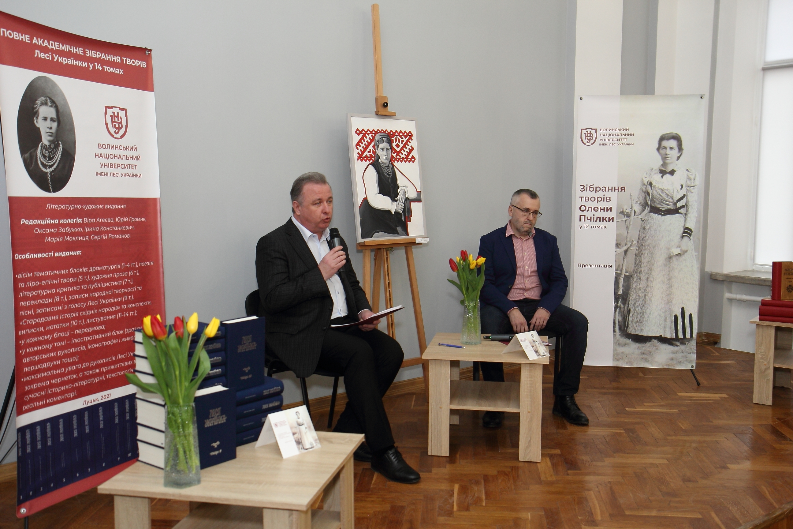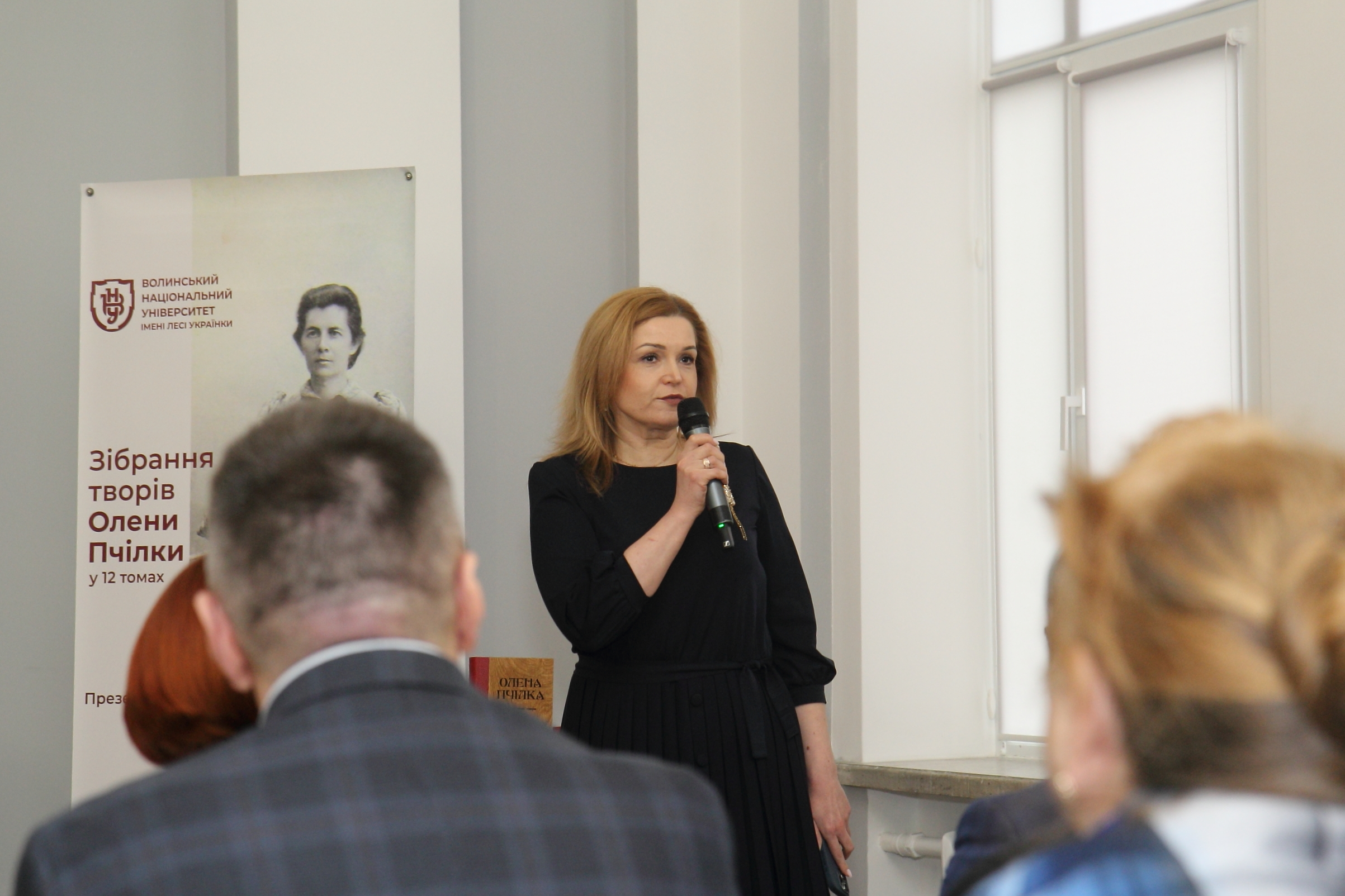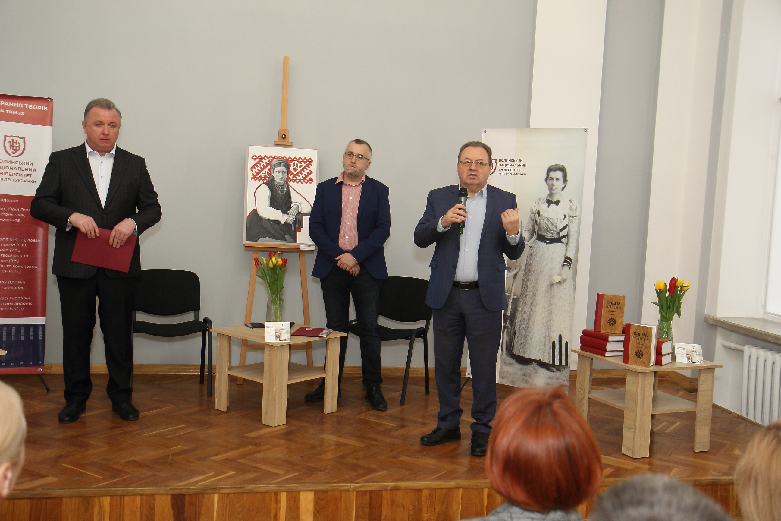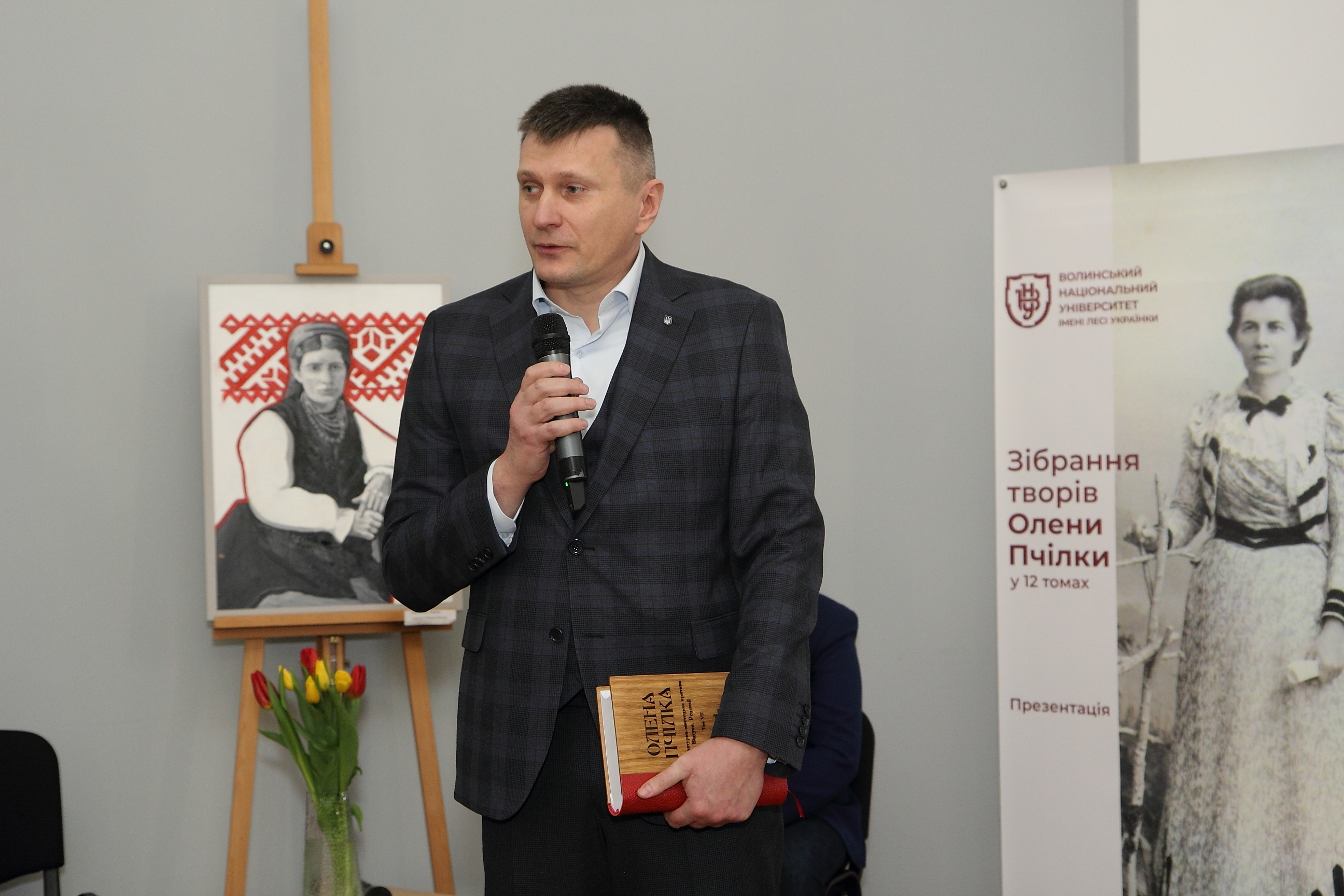 Serhiy Romanov told about his feelings during the work on the 12-volume Collection of Works by Olena Pchilka. According to him, Olena Pchilka was not a Volyn native by birth, but she became a Volyn native by vocation, so it is quite natural that the 12-volume Collection of Works appeared at Lesya Ukrainka Volyn National University.
