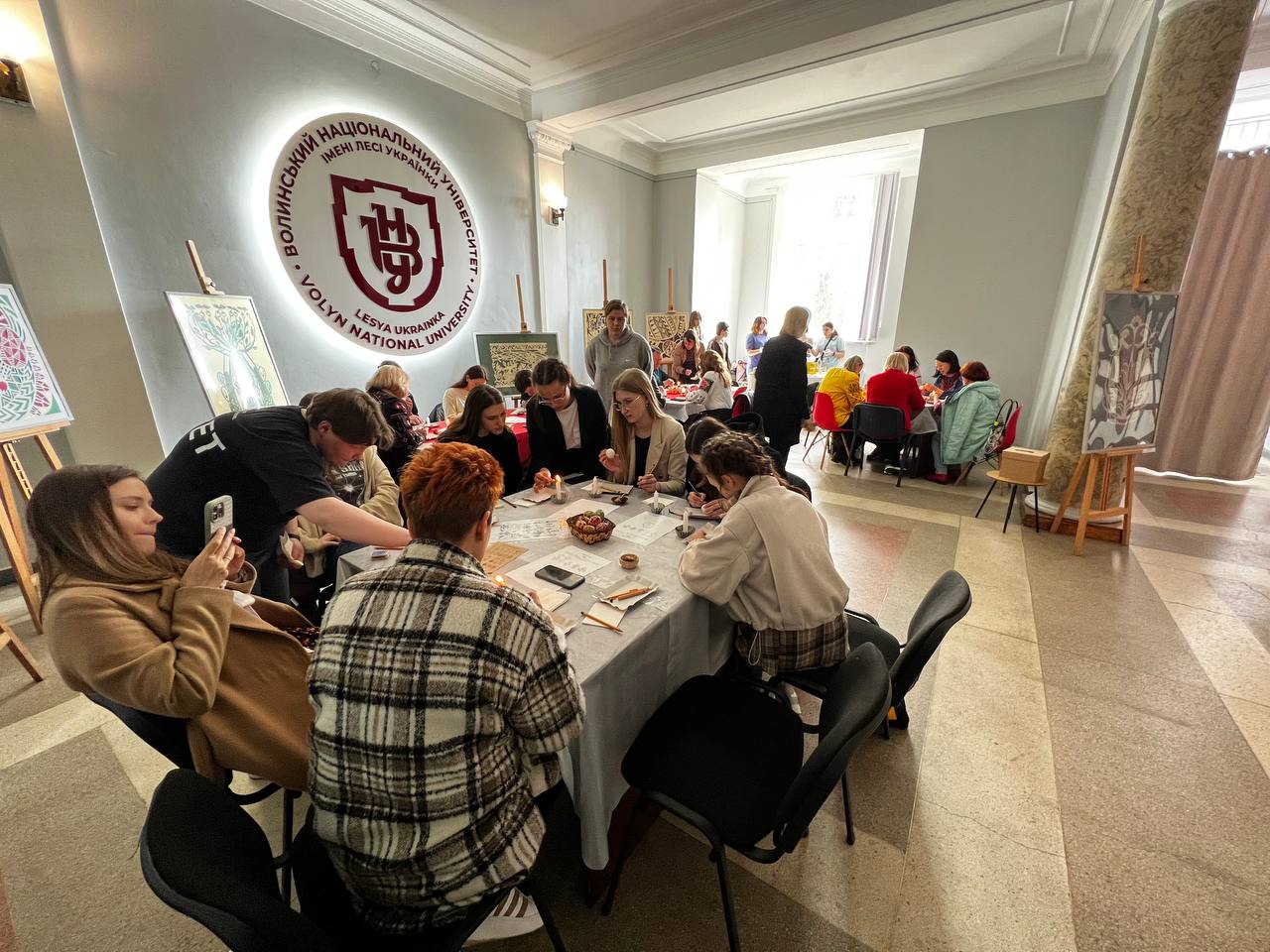 The representatives of the administration and all faculties of the educational institution and the students joined the event. The artistic event was supervised by Department of Fine Arts of Faculty of Culture and Arts. The senior lecturer of the department, a member of the National Union of Masters of Folk Art of Ukraine Halyna Vakhramieieva inspired and taught all interested the subtleties of traditional techniques.