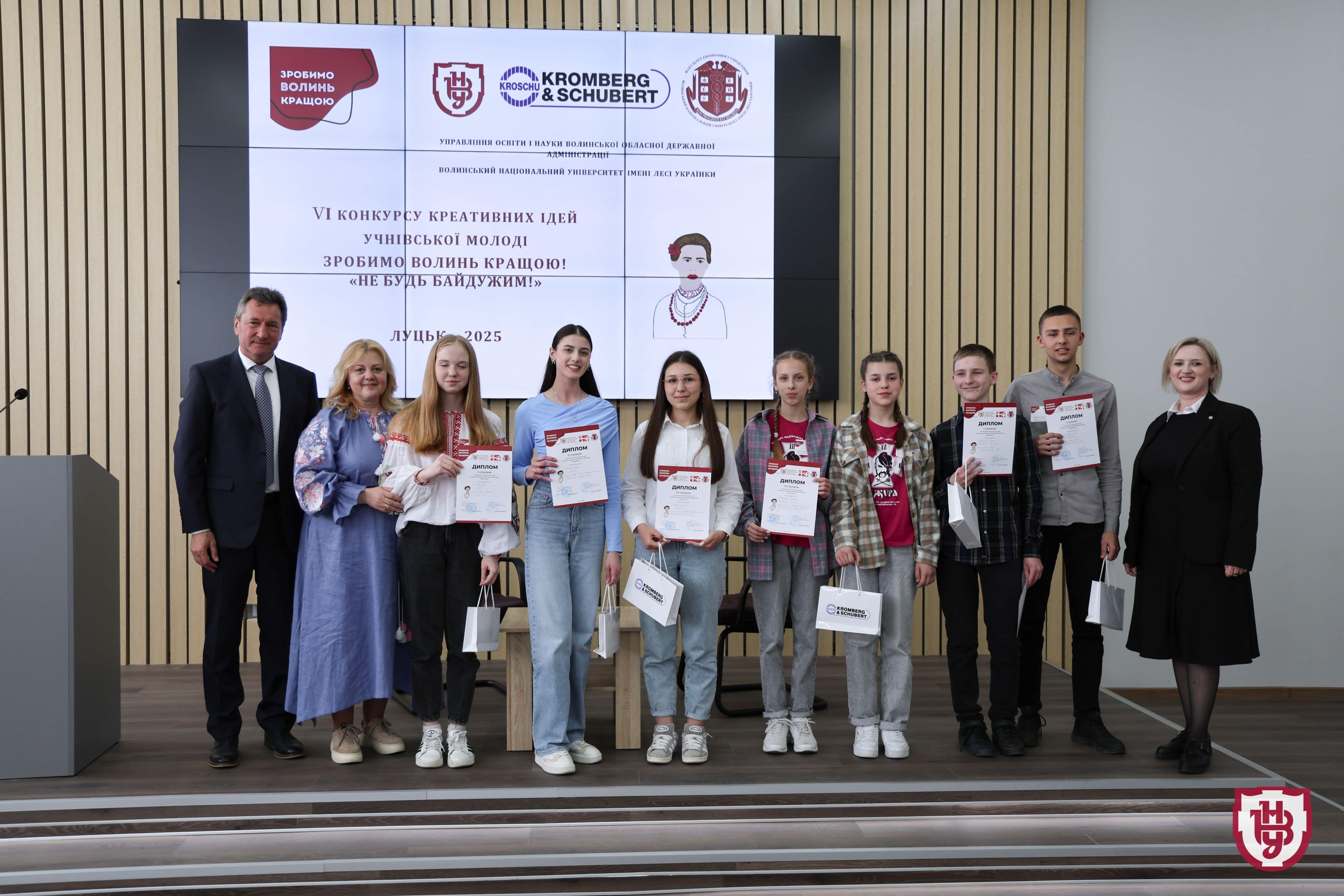Before the event, acting rector Anatolii Tsos welcomed the audience. “I am sincerely glad to welcome you to our best Lesya Ukrainka Volyn National University. It is the best, first of all, for its students, teachers, employees, and programs that provide quality education. And all this creates a good environment for training future specialists. A university is promising only when there is clear cooperation with business, authorities, communities and organizations. It is extremely pleasant that for six years now, together with our partners, we have been holding such a wonderful competition aimed at improving the quality of life for us and our residents,” said Anatolii Tsos, wishing the participants success and inspiration and thanking the competition partner, Kromberg & Schubert.