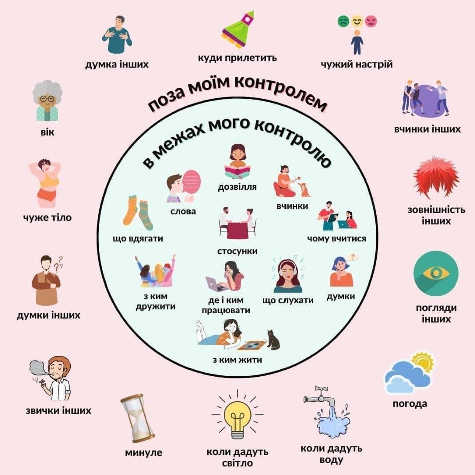 Учасники заходу мали змогу не лише почути фахові поради, а й взяти участь у ряді практичних вправ, зокрема: вправах на усвідомлене дихання, саморефлексію та зняття емоційної напруги. Особливу увагу було приділено вмінню зупинитися у моменті та почути себе – свої думки, емоції, потреби. Однією з важливих вправ стала робота з колом впливу, під час якої учасники визначали, що саме вони можуть контролювати у своєму житті, а що перебуває поза їхнім впливом. Це допомогло студентам краще усвідомити, куди спрямовувати свою енергію та як знижувати рівень тривоги, фокусуючись на діях, які справді залежать від них. Вправи допомогли студентам на практиці відчути, як можна повертати собі внутрішню рівновагу навіть у складних обставинах. Техніки, що застосовувалися під час семінару, були взяті з Всеукраїнської програми з ментального здоров’я «Ти як?», ініційованої першою леді України Оленою Зеленською.