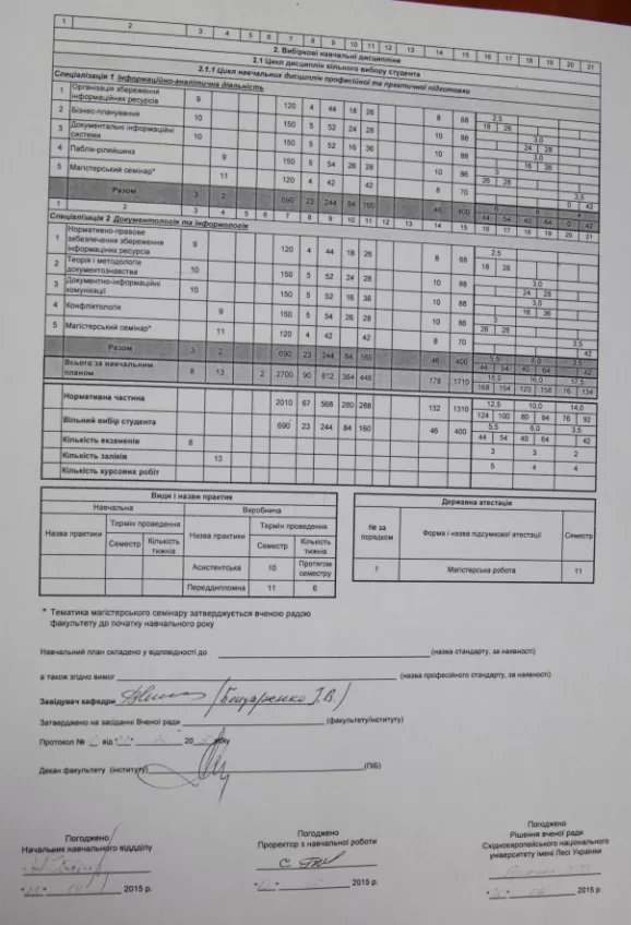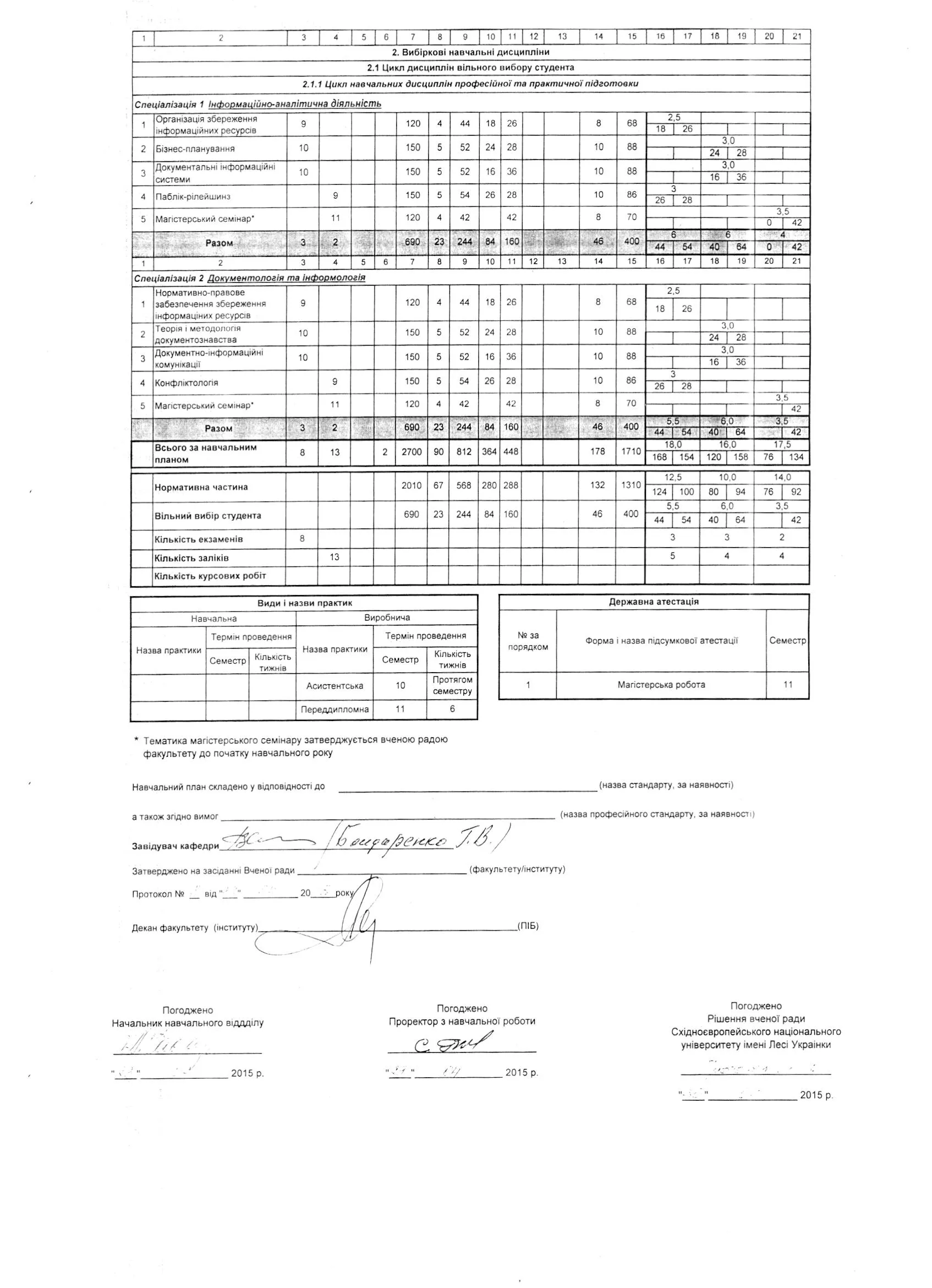 Навчальний план (магістр, денна форма навчання, 2015 р., 2016)