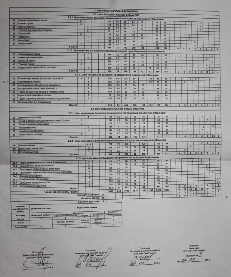 Qualification: Bachelor of Information, Library and Archival Affairs in the specialization "Documentation support of management and information-analytical activities"