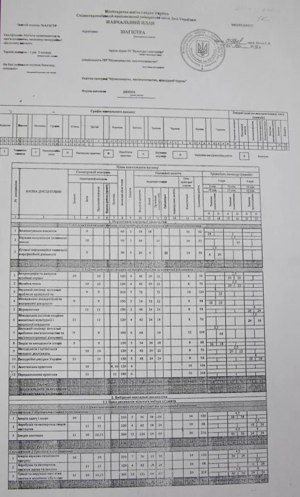 Qualification: Master in Museum Studies, Monument Studies, specialization "Museum Studies, Monument Studies, Cultural Tourism"
