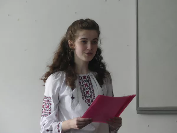 Кандидат наук, доцент кафедри української літератури Вікторія Сірук на початку заходу штрихами означила різноплановість особистості Пантелеймона Куліша та зауважила, що захід підготували студенти факультету.