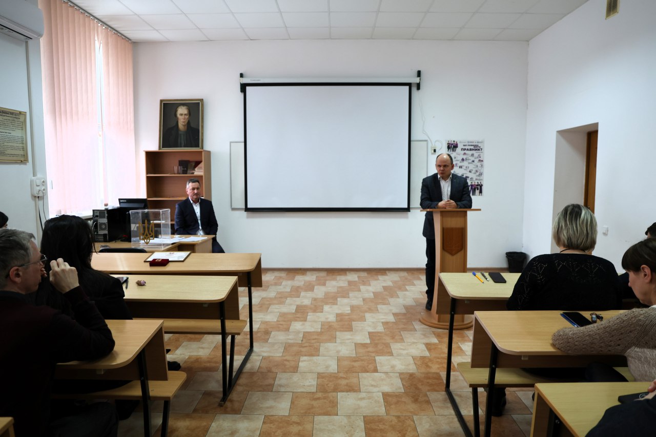 Кандидат на посаду декана факультету Антон Михайлович представив ключові напрями розвитку факультету та поділився досягненнями попередніх років. За його словами, за останні роки на факультеті проведено 996 заходів, що свідчить про системну й активну роботу з роботодавцями, громадськими організаціями та студентською спільнотою. Також продовжується зміцнення матеріально-технічної бази, зокрема розширення криміналістичної лабораторії та обладнання аудиторій мультимедійною технікою.