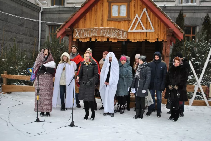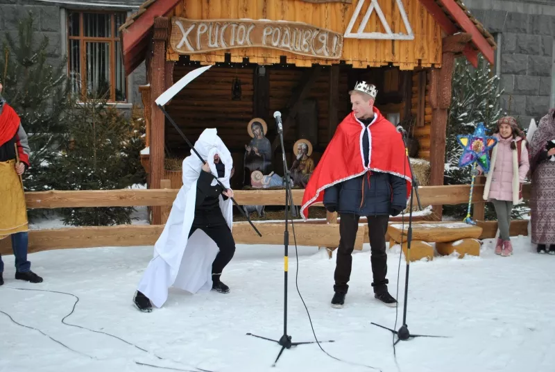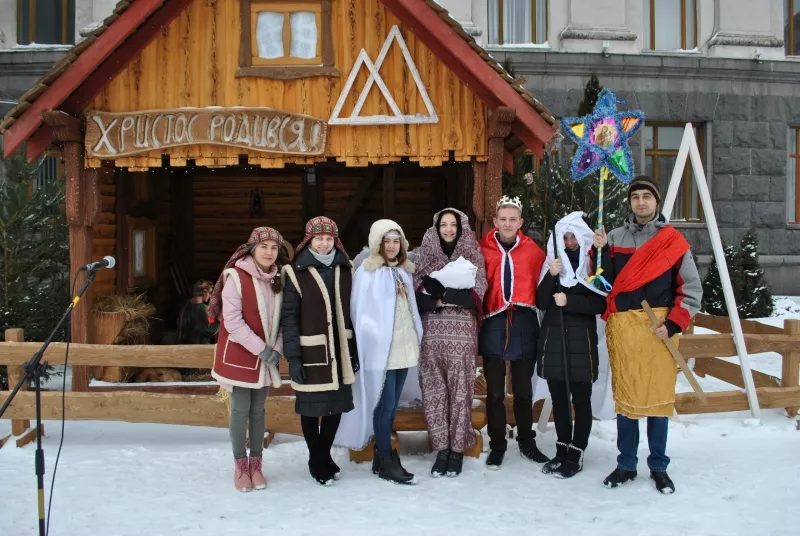 Свою акторську майстерність у вертепі продемонстрували студенти біофаку Ольга Дубнік, Олександр Коменда, Мар’яна Козел, Вікторія Мельничук, Дарина Шкабура, Марія Слабецька, Юрій Бондарук, а допомагали їм Вікторія Копа й Ірина Сеньків.