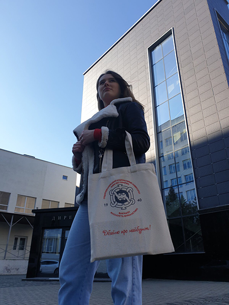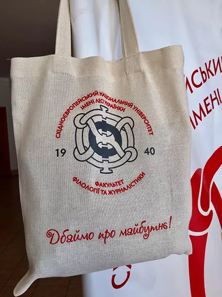Колектив факультету філології та журналістики не залишився осторонь і розробив дизайн екоторбинок із логотипом рідного факультету. Ці унікальні торбинки не лише рекламують факультет, а й підтримують світовий рух за збереження екології. До виготовлення такої продукції автори ідеї (а зініціювала її Ірина Левчук) підійшли відповідально, адже спочатку провели опитування, щоб дізнатися, чи є потреба у виготовленні таких стильних аксесуарів. Усі сприйняли пропозицію “на ура”, і не лише студенти, а й викладачі активно підтримали брендування в екостилі. Метою створення екоторбин є заклик до збереження природи не словом, а ділом.