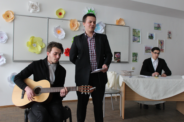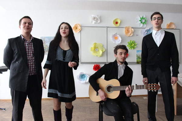 Яскравою частиною літературно-мистецької композиції і, звичайно ж, іще одним виявом виняткового таланту було виконання пісень на слова Віслави Шимборської та Ліни Костенко під живий музичний супровід. Приємно подивувало й те, що студенти Юлія Хорькова, Юрій Поліщук та Владислав Момот самі поклали тексти на музику. Читання віршів було вдало перемежоване афористичними ліричними відступами, що влучно підкреслювали як зміст поезій, так і загальну ідею заходу, надавали йому ще більшої динаміки й чуттєвості. Завершальним акордом композиції було виконання студентами пісні з репертуару гурту «Brutto» «Вечірнє сонце» на слова Ліни Костенко, що надало заходу особливої атмосфери затишку та емоційного піднесення. Ідейним натхненником та керівником студентів у їхній нелегкій, проте в результаті надзвичайно вдалій справі стала кандидат філологічних наук, доцент Яручик Ольга Борисівна.