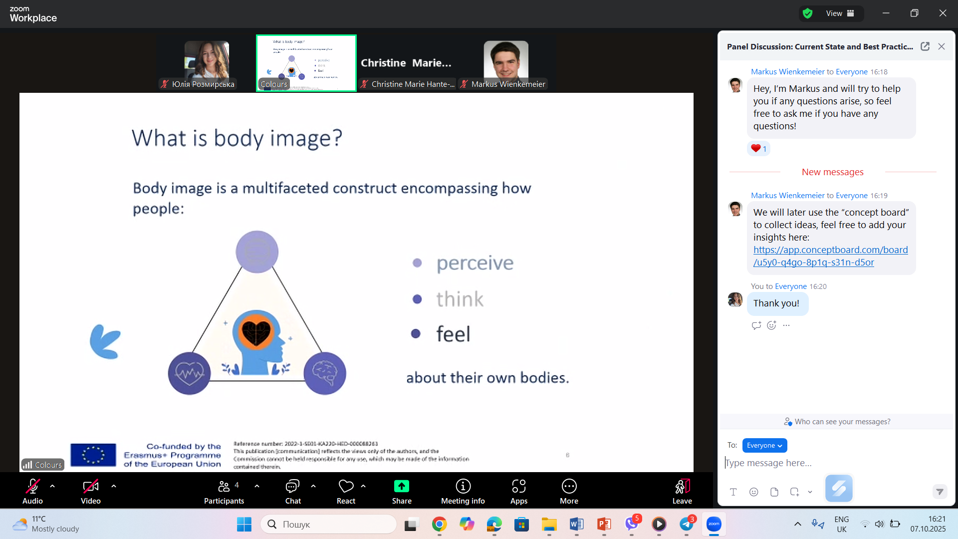 Для учасників онлайн формату була доступна участь в панельній дискусії на тему: «Сучасний стан та найкращі практики у сфері психічного здоров'я, сприйняття власного тіла та рівності, різноманітності та інклюзивності (EDI)». Особливо цікавою була доповідь доктора Ани Куртовіч (Осієк, Хорватія) про зв’язок психотравми та розладів харчової поведінки в дитячому та підлітковому віці.