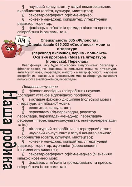 Однією з ключових «фішок» довідника став перелік професій – можливість зорієнтуватись у спеціальностях та приміряти на себе ту чи іншу роботу в перспективі. Наголошують, що саме такі речі дадуть змогу студентам й абітурієнтам чіткіше бачити своє майбутнє. Разом із тим це ще раз підкреслює ті можливості, які відкриває навчання на нашому факультеті.