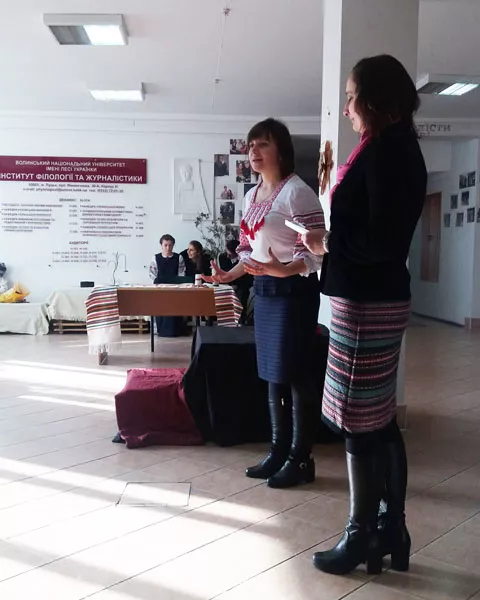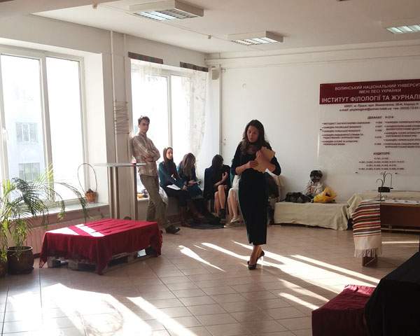 «Звісно, у стінах факультету філології та журналістики буде чимало заходів, присвячених Лесі Українці. Але нам захотілося зібратися саме в день її народження і в невимушеній камерній атмосфері вкотре відчути глибину Лесиного слова. І викладачі, і студенти такі відкриті, щирі, емоційні», – каже керівник студентського театру «Discipulus ludens», доцент Оксана Головій. І додає: «Показово, що Леся Українка в “Discipulus ludens” об’єднала студентів ФФтаЖ з першого по п’ятий курс. Радує, що вони підтримали ініціативу, долучилися до режисерської роботи, спробували себе як декоратори й костюмери, глибоко ввійшли в свої акторські амплуа. Канікули не стали на заваді ані репетиціям, ані сьогоднішній зустрічі…»
