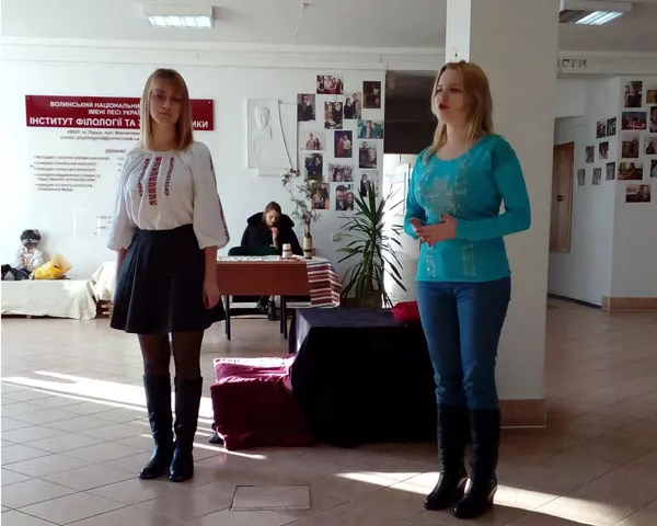 Із прочитання власного вірша, присвяченого Лесі Українці, розпочала захід Марія Пазюк. Щирі слова пошани «своєї землячки» запали в душу кожному глядачеві й налаштували на глибоко особистісний рецепційний горизонт.