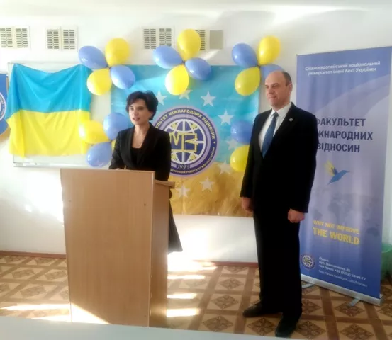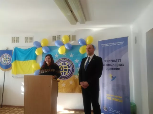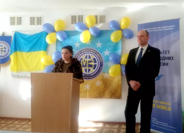 Потому вітальні слова виголосили завідувачі кафедр міжнародних економічних відносин Наталія Павліха, іноземних мов та перекладу Оксана Черняк, в.о. кафедри міжнародних комунікацій та політичного аналізу Наталія Карпчук і заступник декана з виховної роботи Євгенія Вознюк.