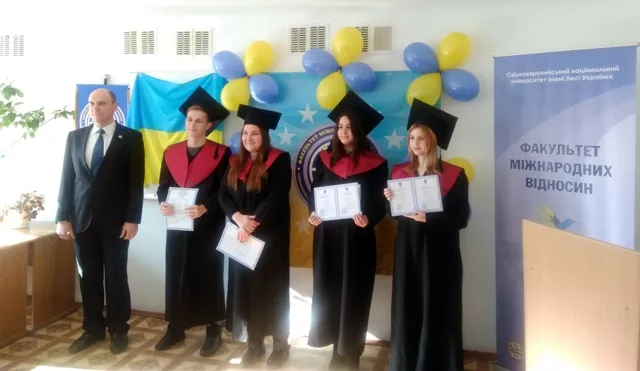 8 лютого святкову естафету вручення дипломів про вищу освіту в Лесиному університеті продовжили на факультеті міжнародних відносин. Цього дня випускниками стало 42 особи, 14 із яких отримали диплом із відзнакою.
