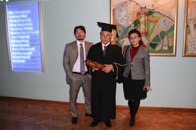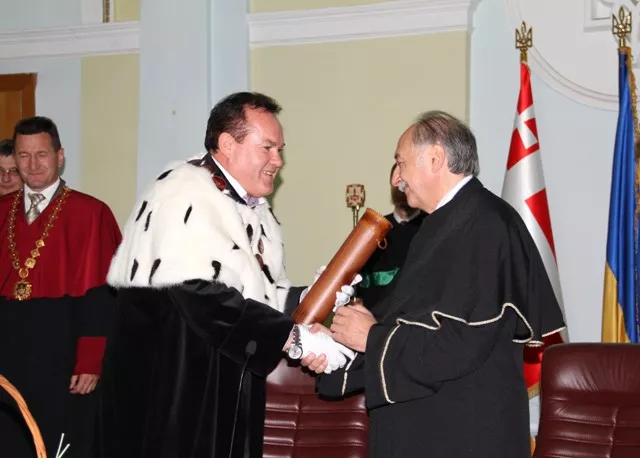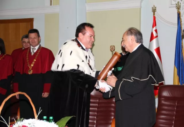Ігор Коцан вручає диплом та посвідчення Doctor honoris causa Східноєвропейського національного університету імені Лесі Українки Еджидіо Рангоне