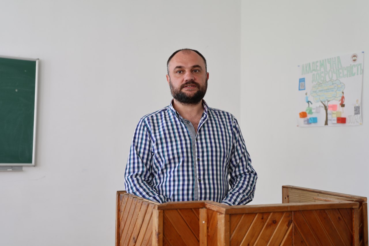 Гостем був ветеран війни, голова громадської організації «Зруш скелю», ініціатор численних соціальних акцій на підтримку військових Євген Сивопляс.