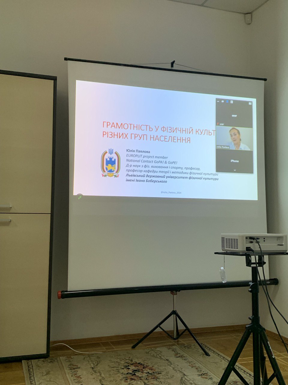 Лекторка донесла найновішу інформацію про концепції та моделі, а також основні складники грамотності у фізичній культурі, розвиток цієї грамотності впродовж життя, особливості формування грамотності в осіб різного віку, в різних країнах. Активні слухачі мали змогу отримати однойменний навчальний посібник, укладений Юлією Павловою, рецензентом якого виступила завідувачка кафедри теорії фізичного виховання та рекреації, професорка Наталія Бєлікова.
