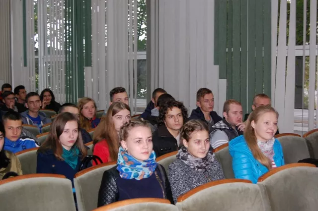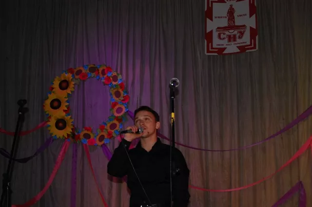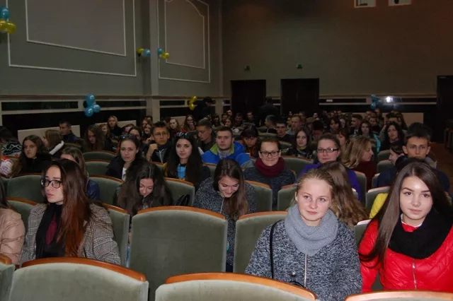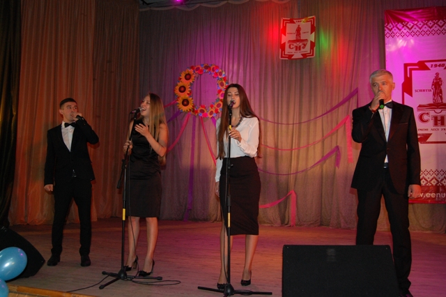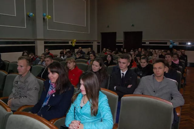 «14 жовтня на календарі позначено двома великими святами – Покровою Пресвятої Богородиці та Днем захисника України. Тож напередодні цих свят ми зібралися, щоб привітати і вшанувати, згадати всіх воїнів рідного вишу, котрі захищали та захищають рідну землю на Сході нашої держави», – такими словами до присутніх у залі звернулися ведучі концерту Анастасія Оболончик і Сергій Скулинець.