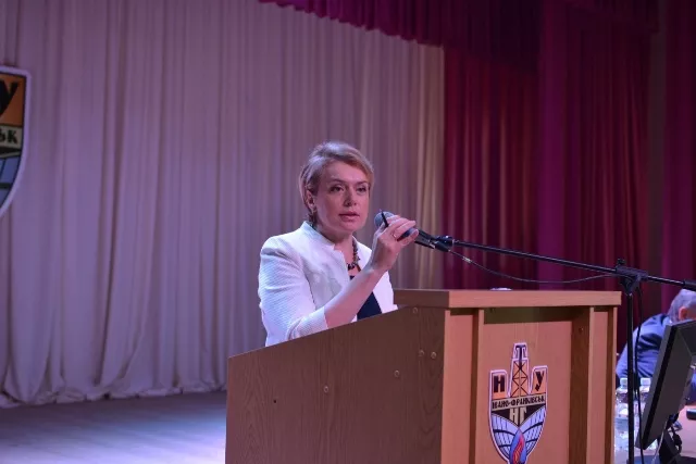 Ректор ІФНТУНГ, академік НАН України, професор Євстахій Крижанівський представив гостей та запросив до слова міністра освіти і науки України Лілію Гриневич.