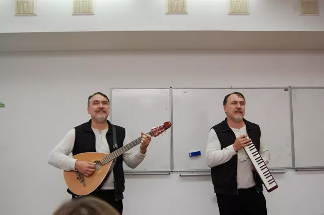 Давно став крилатим вислів Антона Павловича Чехова: «Якщо в першій дії п’єси на стіні висить рушниця, то в третій вона повинна вистрелити». Ще з самого початку можна було здогадатися, що поява музичних інструментів на презентації – не випадкова. І справді, імпреза виявилася водночас і концертом – у супроводі кобзи й духової гармоніки й виконанні Братів Капранових лунала ще й співана поезія у дивовижних стилях «кобза-реп», «боса-кобза» тощо.