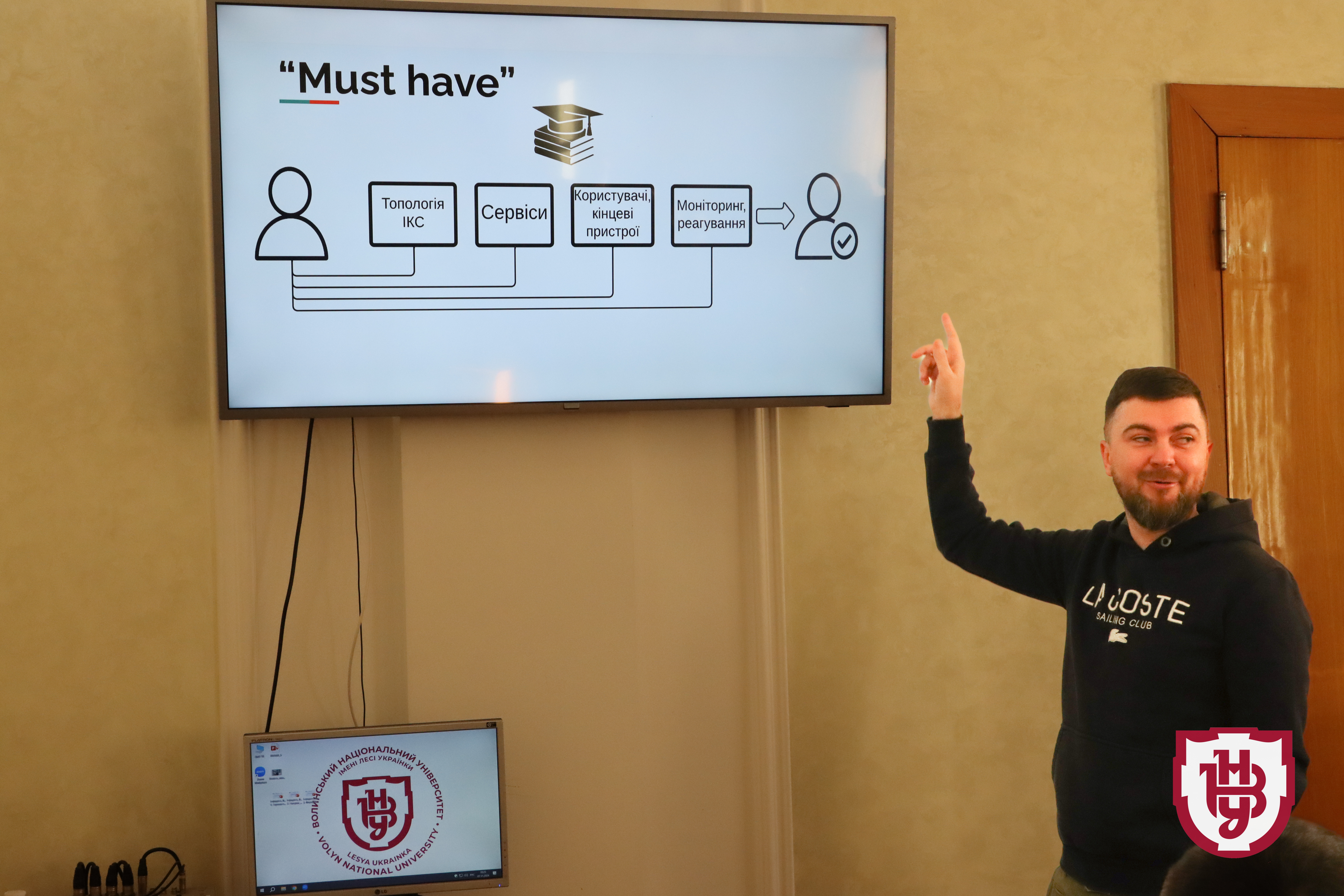 Спікерами лекції стали: Роман Вознюк, начальник відділу інформаційно-комунікаційних технологій Управління цифрової трансформації та комунікацій; Володимир Геращенко, директор фірми «SocPrime»; Олександр, Управління Державної служби спеціального звʼязку та захисту інформації у Волинській області.