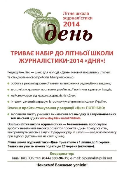 Отже, охочі пройти стажування в редакції «Дня» в рамках Літньої школи журналістики повинні: