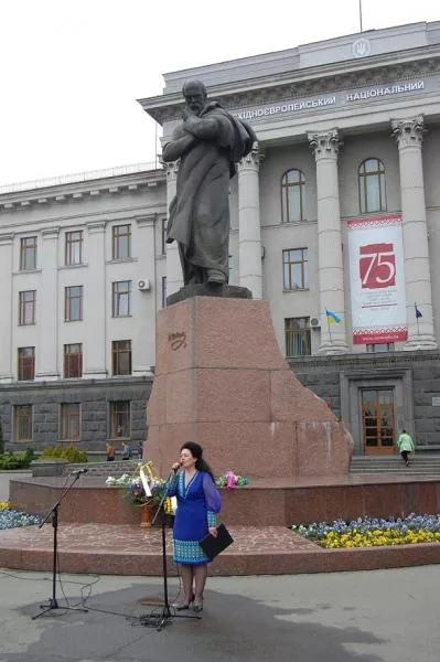 Своїми роздумами про роль і місце Поета-Пророка в житті кожного щирого українця, болісну актуальність його поезій у наш непростий час (особливо в умовах агресії східного сусіда) поділилася з присутніми голова Волинської крайової організації Всеукраїнського товариства «Просвіта» імені Тараса Шевченка, доктор історичних наук, професор Східноєвропейського національного університету імені Лесі Українки Людмила Стрільчук.