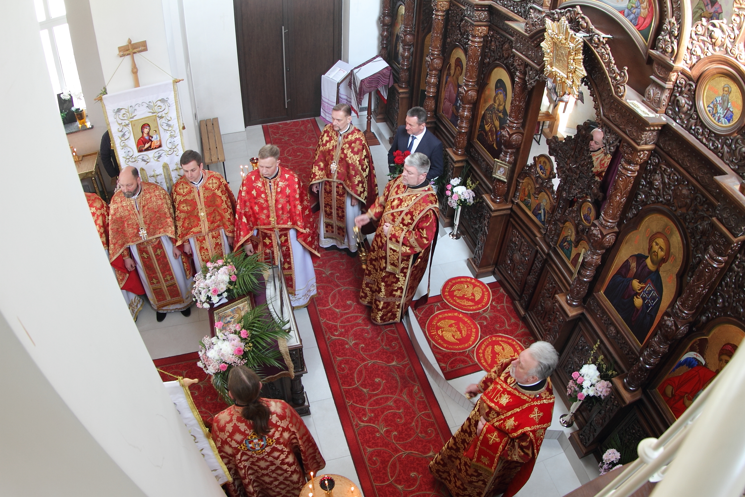Настоятель храму привітав владику, подякувавши за візит і запросивши очолити Божественну Літургію. «Щиро вітаємо Вас в університетському Храмі Софії – Премудрості Божої. У Храмі, ідейним натхненником і святителем якого є ви. Просимо Ваших Святительських молитв за Україну, за військо, за народ, за Волинський край і місто Луцьк, за цей університет, за усіх нас. Аби люди вірили в Бога, шанували церкву, гуртувалися навколо храму і любили одне одного», – наголосив протоієрей.
