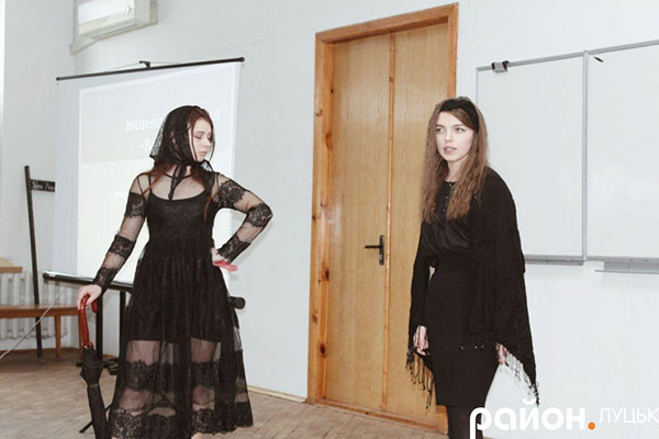 Потім перед публікою постали перевтілені у незвичні сценічні образи студентки: три душі, які повідали загалу про свої гріхи, та три ворони – символи зла в історичній долі трьох народів – українського, польського і російського. Ретельно підібрані костюми та акторську майстерність дівчат підмітила вся аудиторія.
